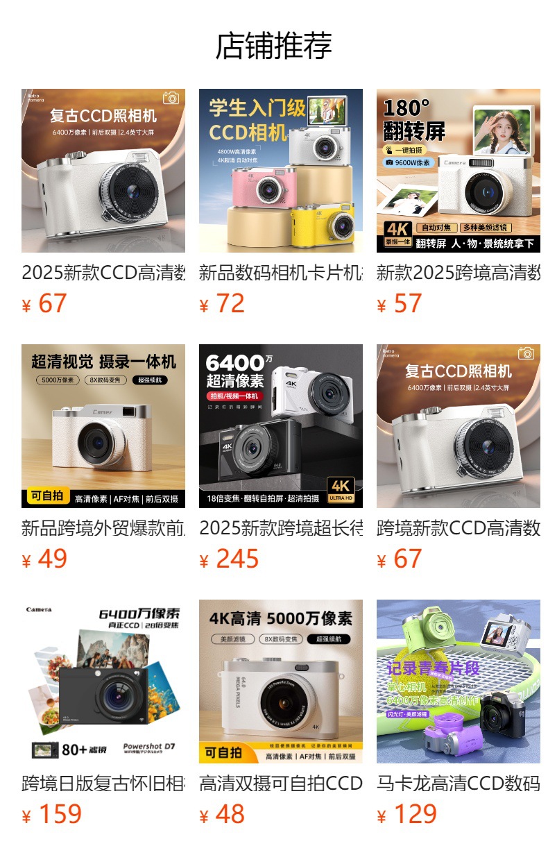 새로운 2025 국경 HD 디지털 카메라 새로운 아름다움 셀카 카메라 도매 CCD 학생 파티스토어 가기