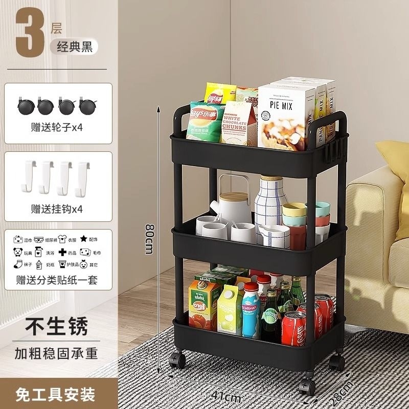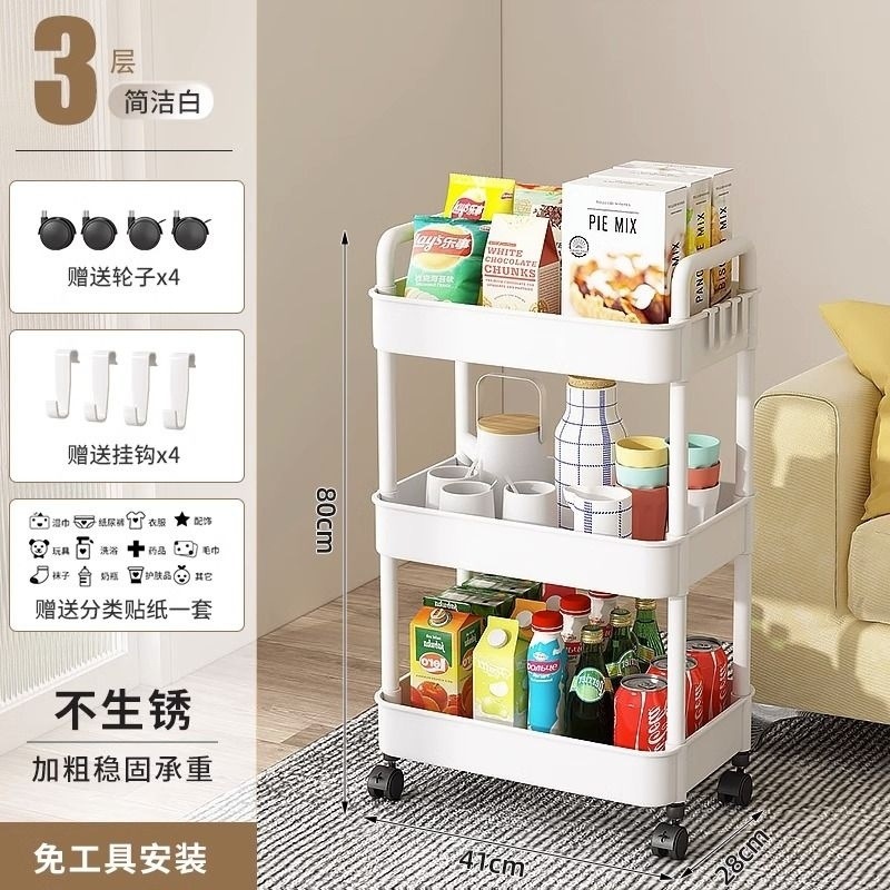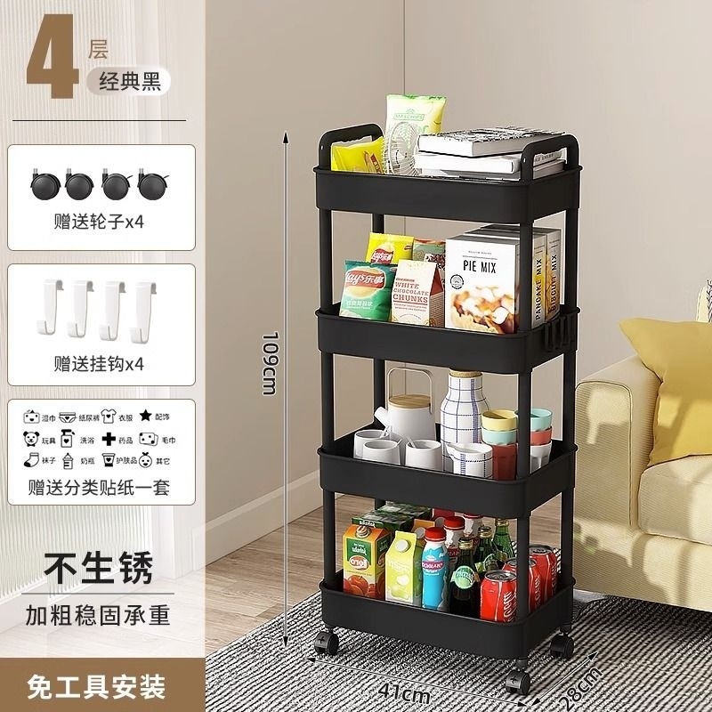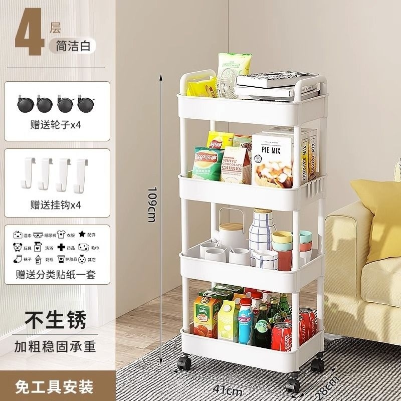 바퀴 달린 트롤리 화장실 보관함 거실 바닥 스탠딩 모바일 스낵 보관 가정용 다층 보관함 새로운스토어 가기