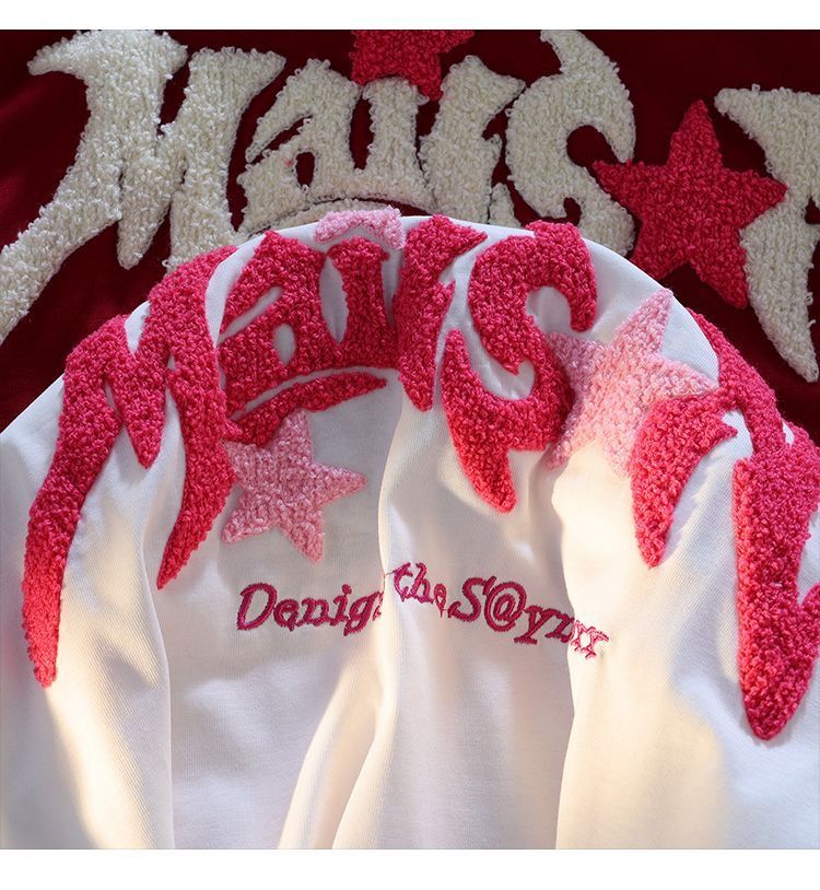 여름 트렌디 브랜드 bestie 착용 루즈 캐주얼 다용도 슬리밍 탑 여성용 일본식 문자 플록 자수 반팔 티셔츠
