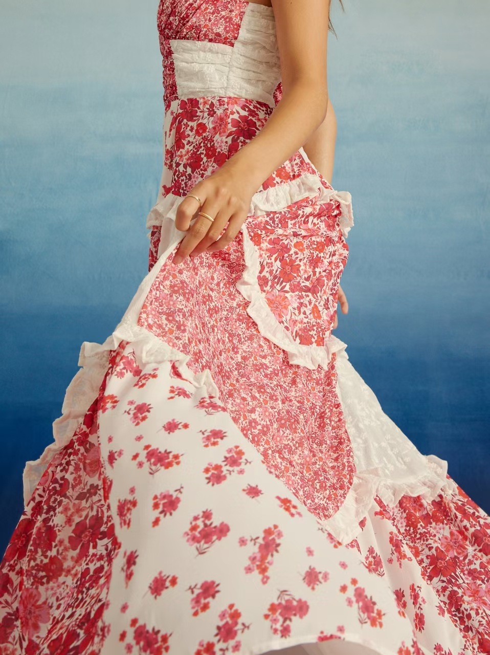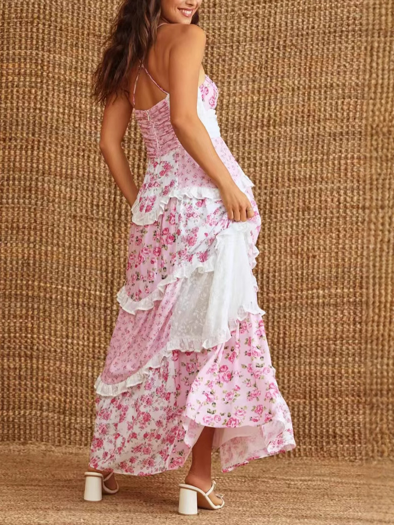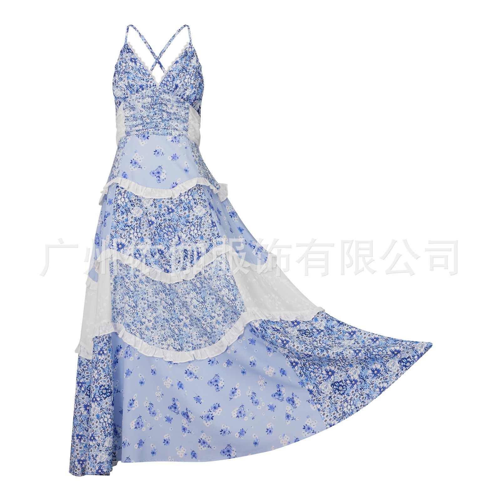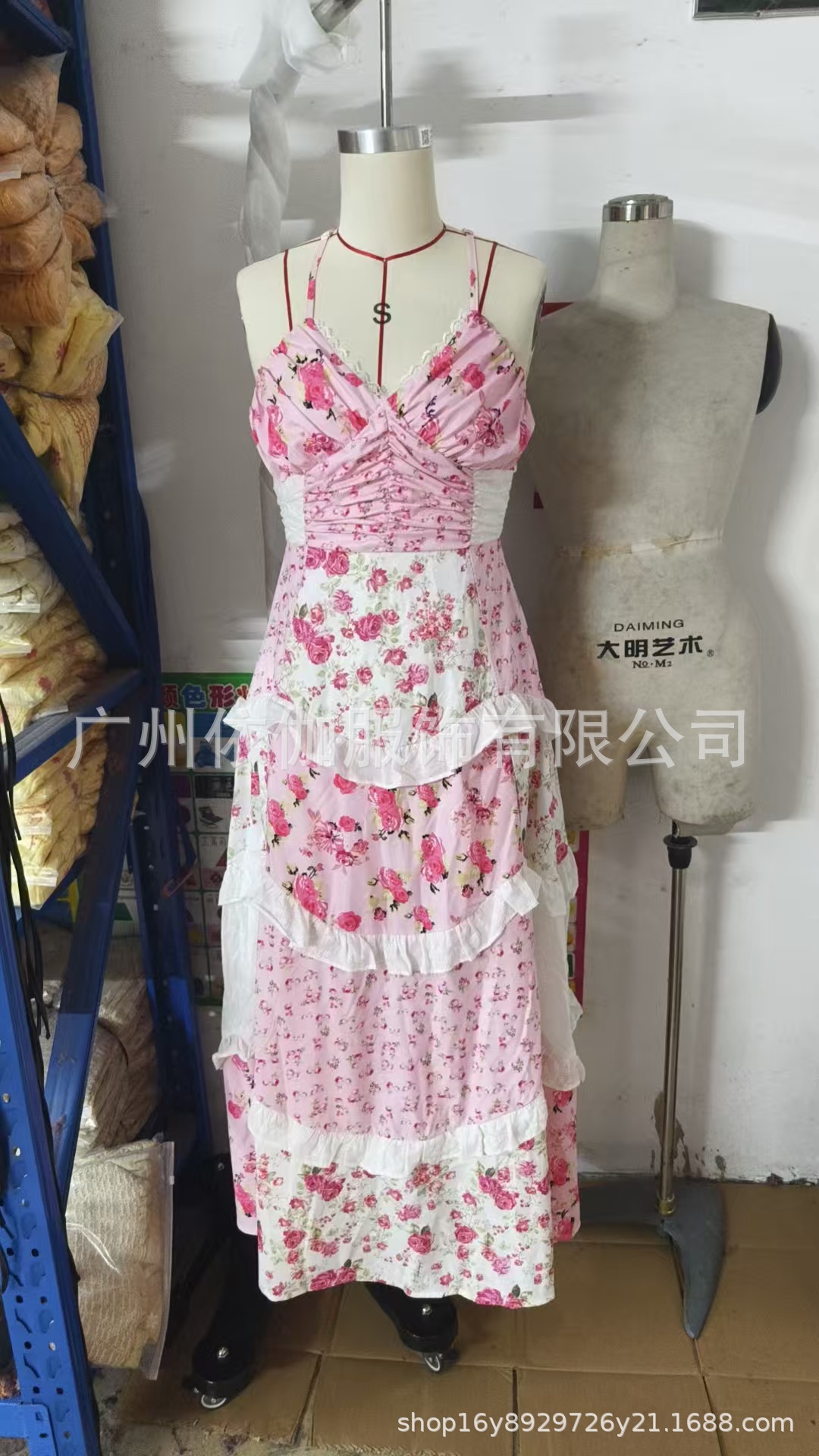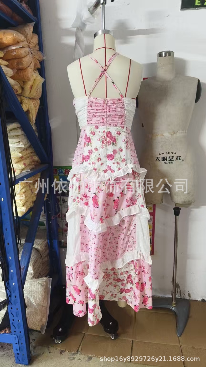 2025 유럽과 미국의 섹시한 서스펜더 꽃무늬 레이스 스플라이싱 서스펜더 드레스