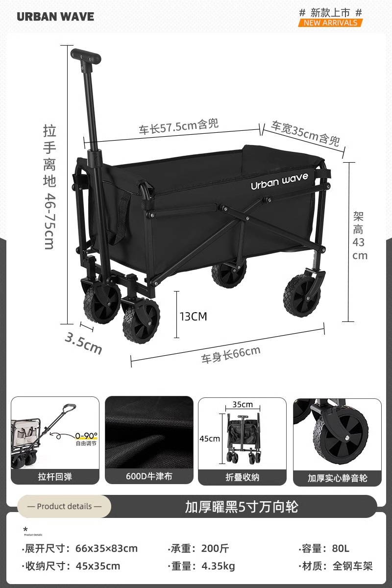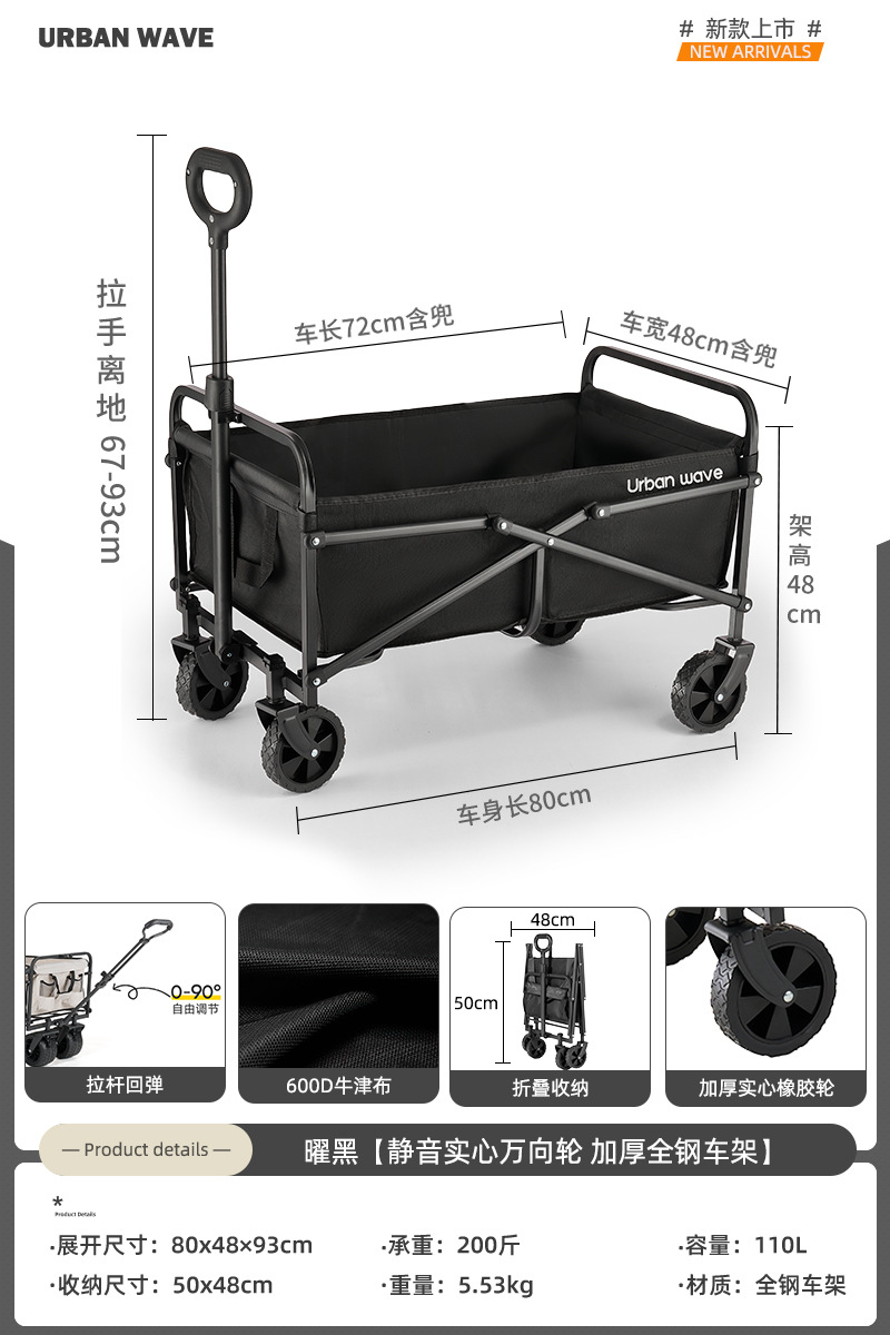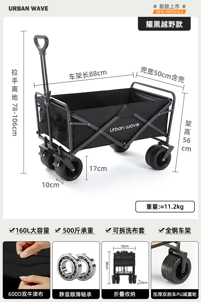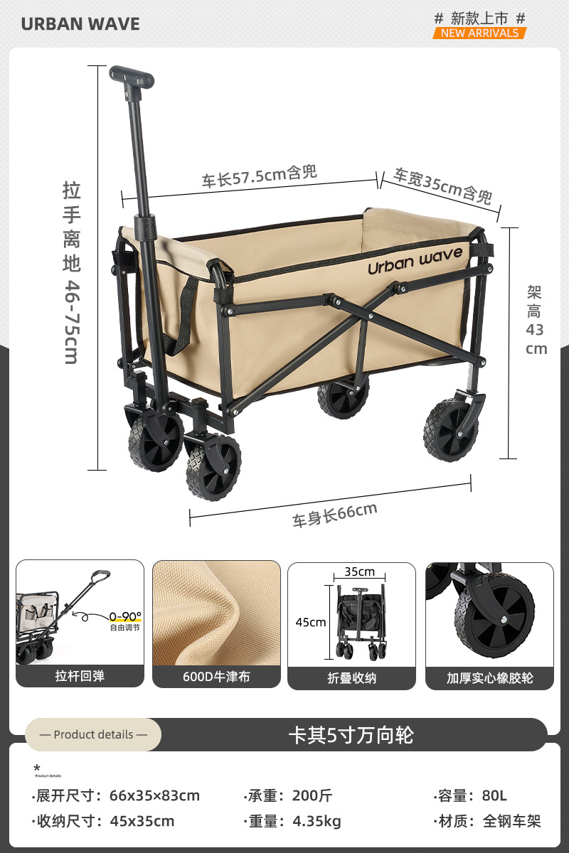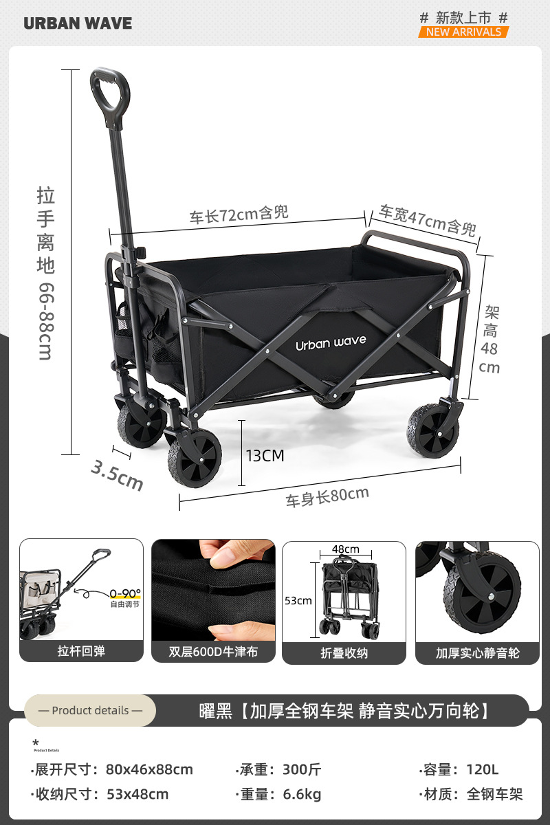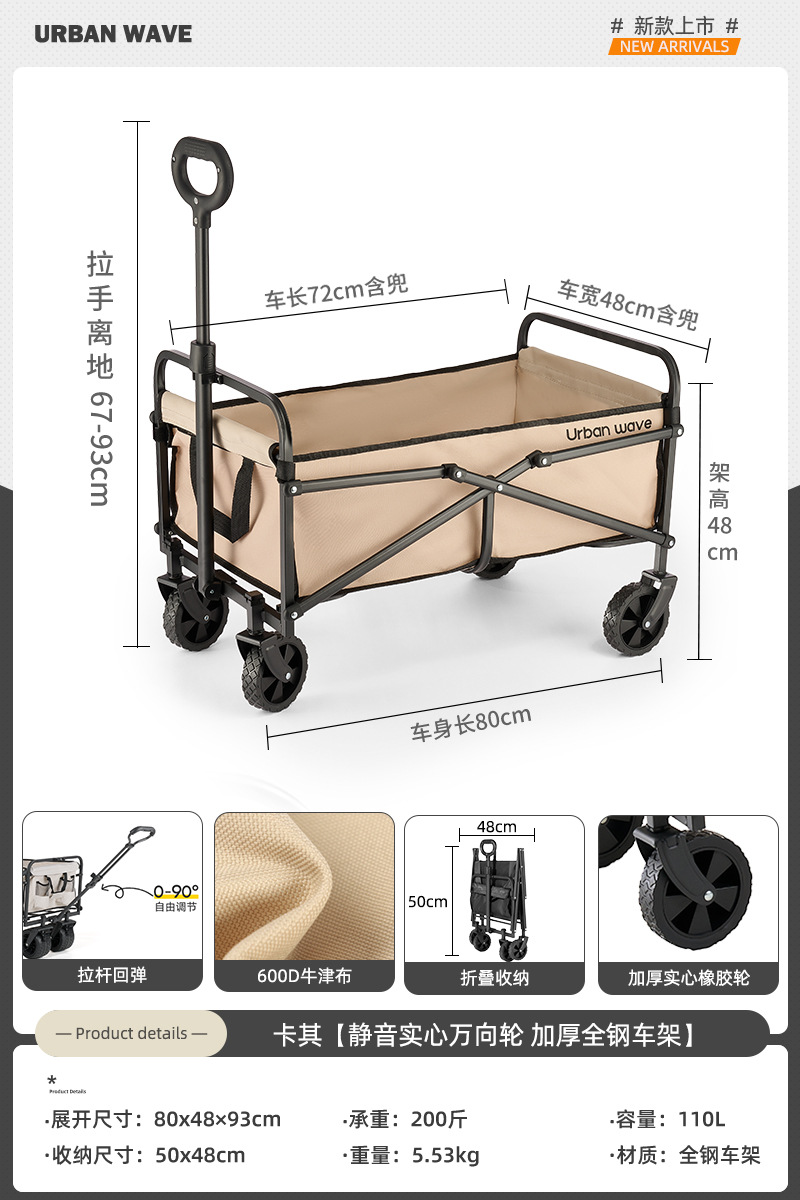 도시 웨이브 캠핑 트롤리 캠프 접이식 야외 캠핑 여행 피크닉 트롤리 익스프레스 홈 소형 트레일러