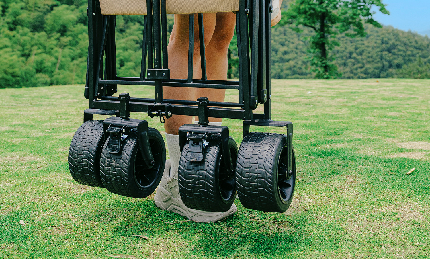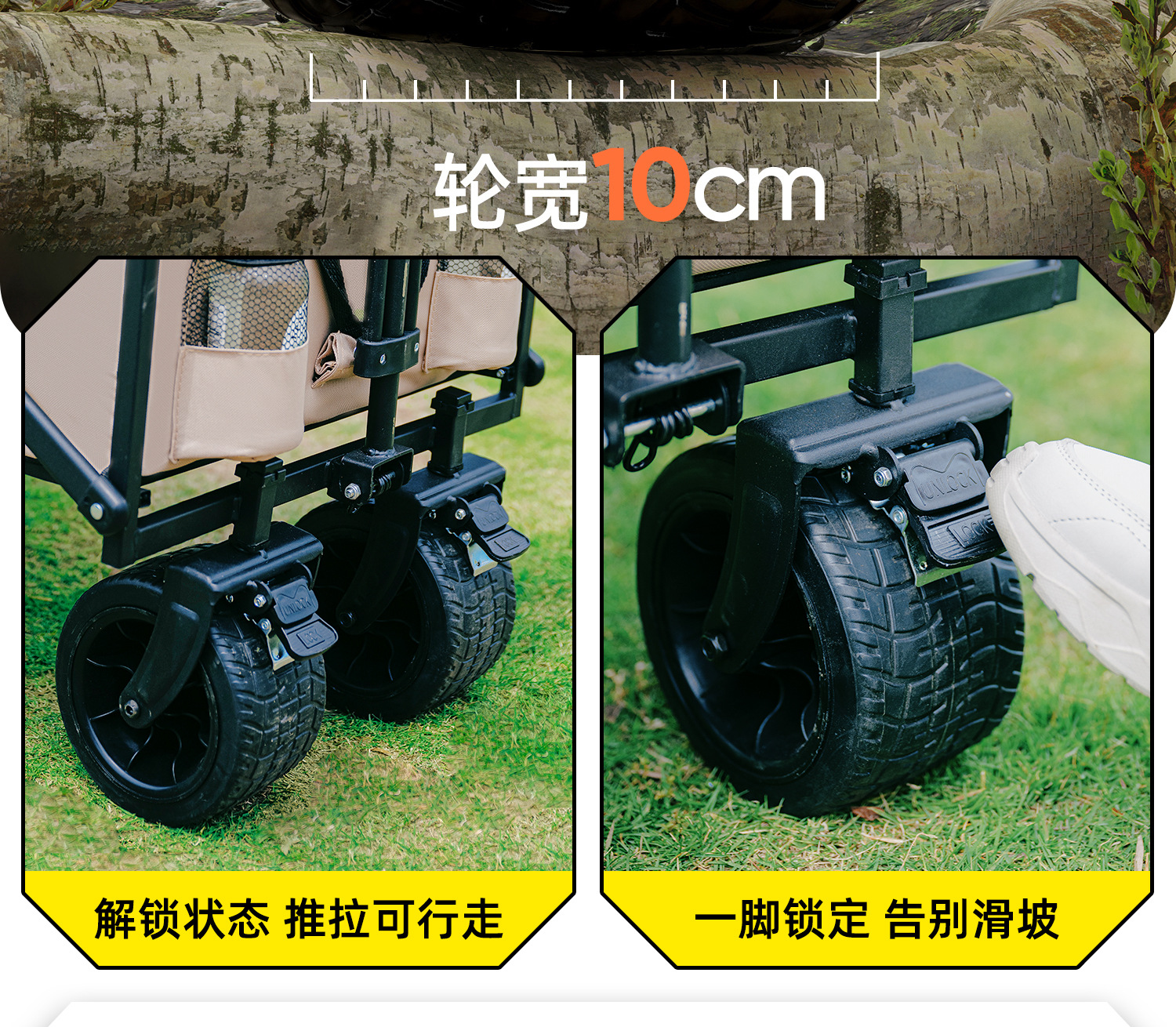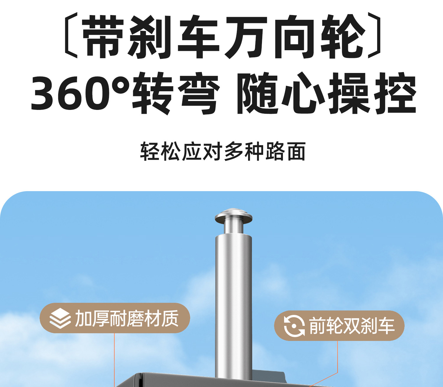 • 에어크래프트 카키 [17cm 두꺼워진 이중 브레이크 충격 흡수 휠/내하중 250kg] 확대되고 두꺼워진 프레임