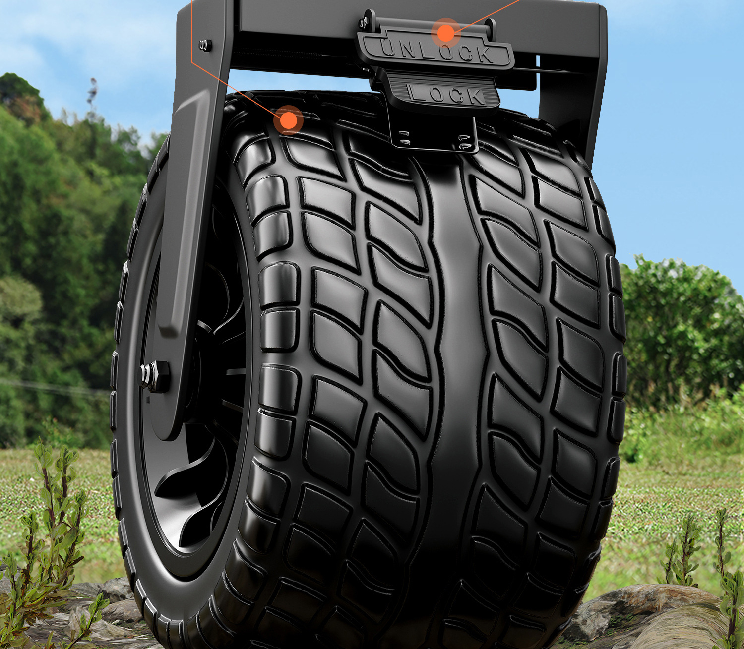 • 오프로드 흑요석 [19cm 더블 브레이크 충격 흡수 휠/내하중 225kg] 확대 및 두꺼워진 프레임