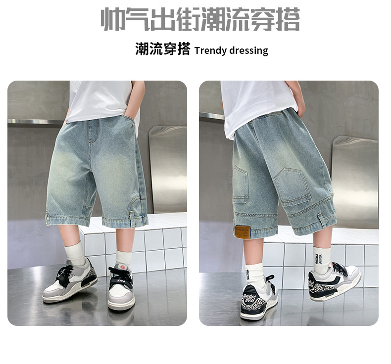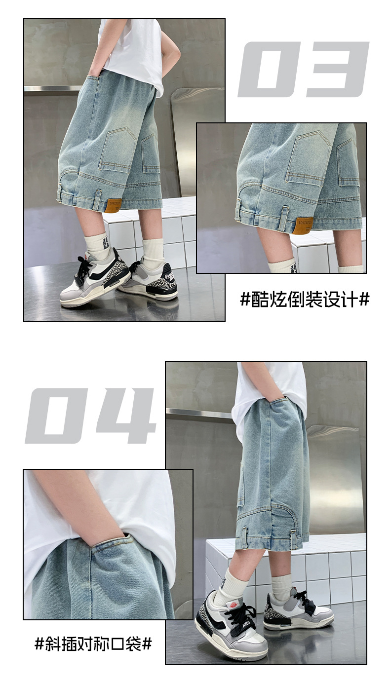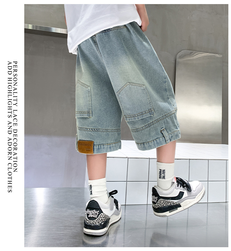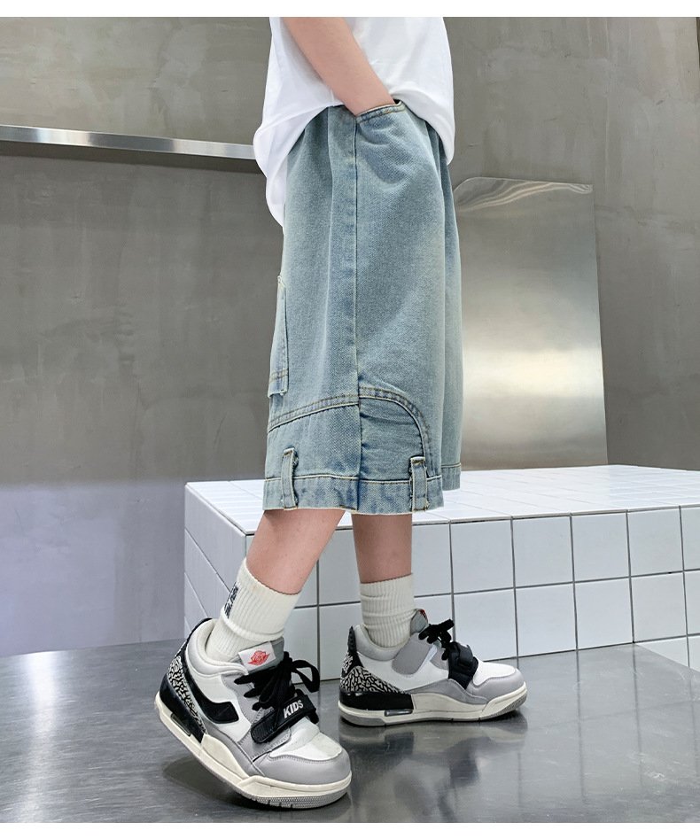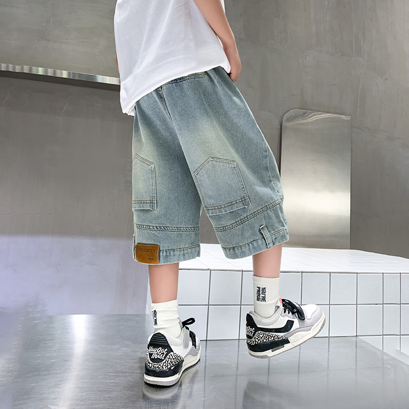 아동복 소년 바지 여름 착용 얇은 부드러운 데님 작업복 반바지 새로운 바지 유행 캐주얼 소년 바지스토어 가기