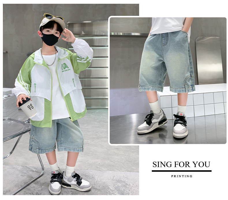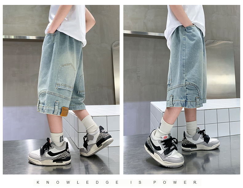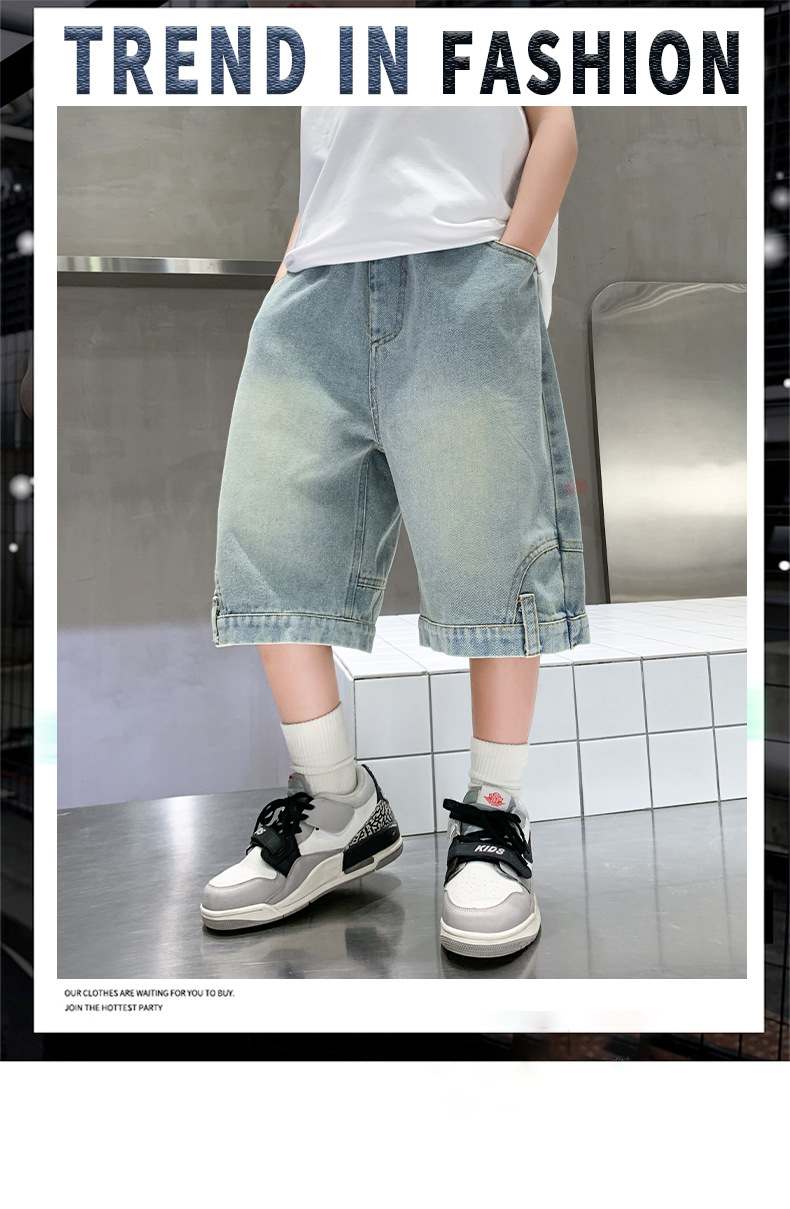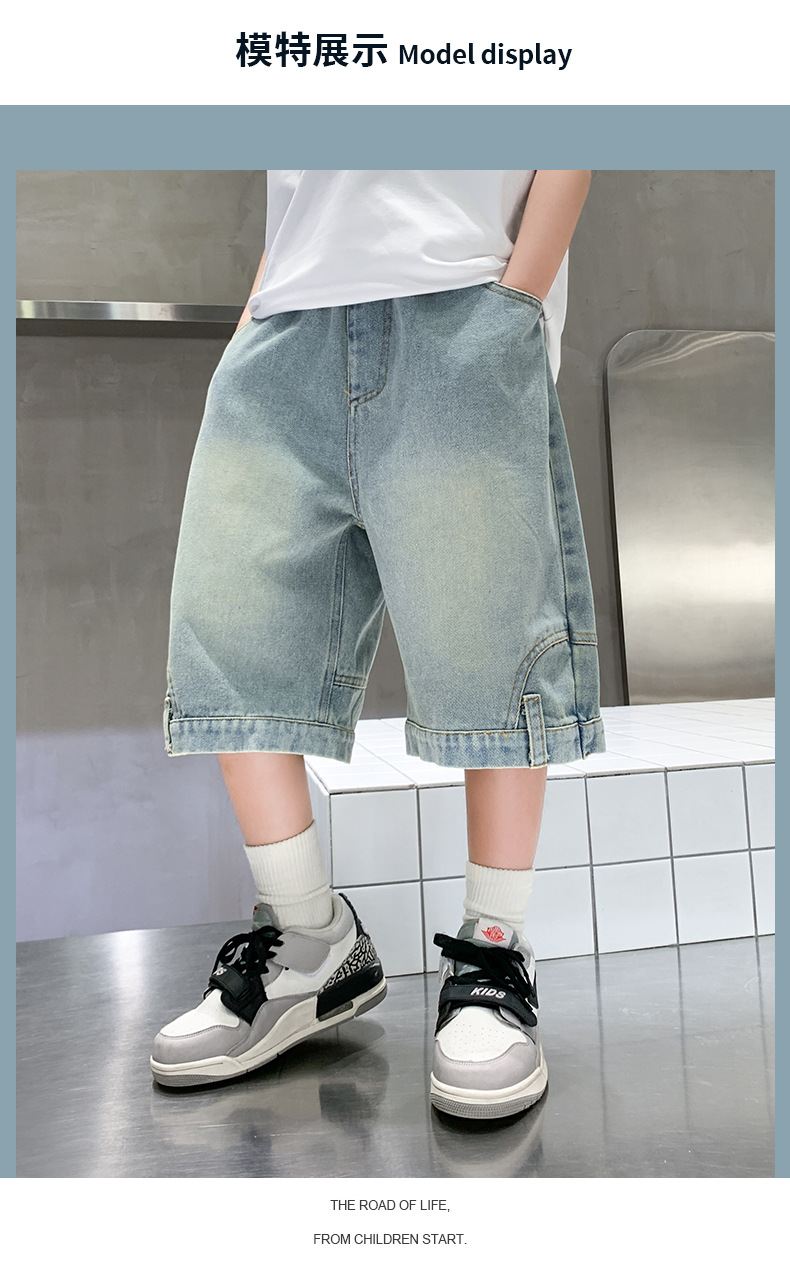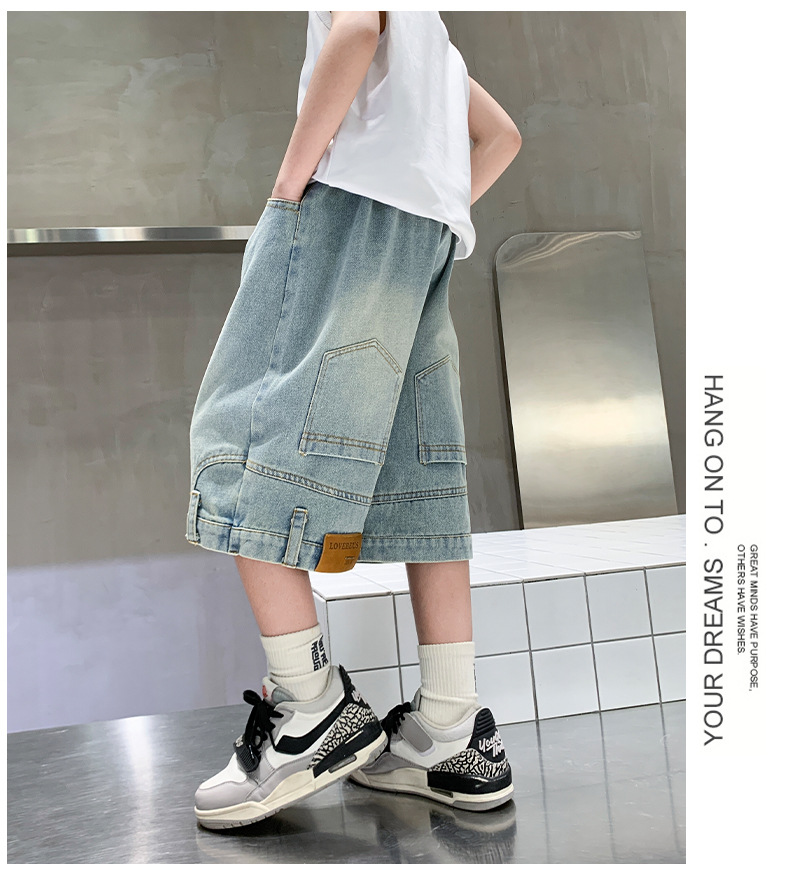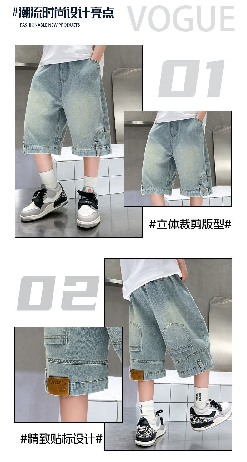 아동복 소년 바지 여름 착용 얇은 부드러운 데님 작업복 반바지 새로운 바지 유행 캐주얼 소년 바지스토어 가기