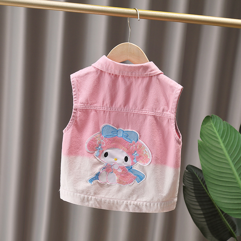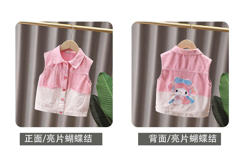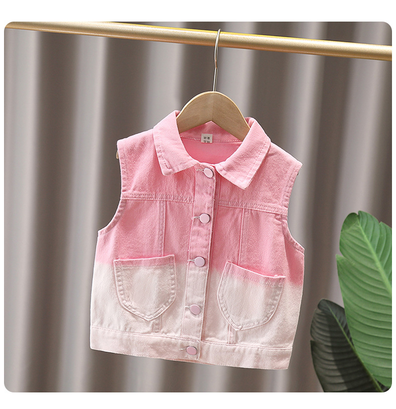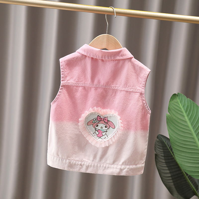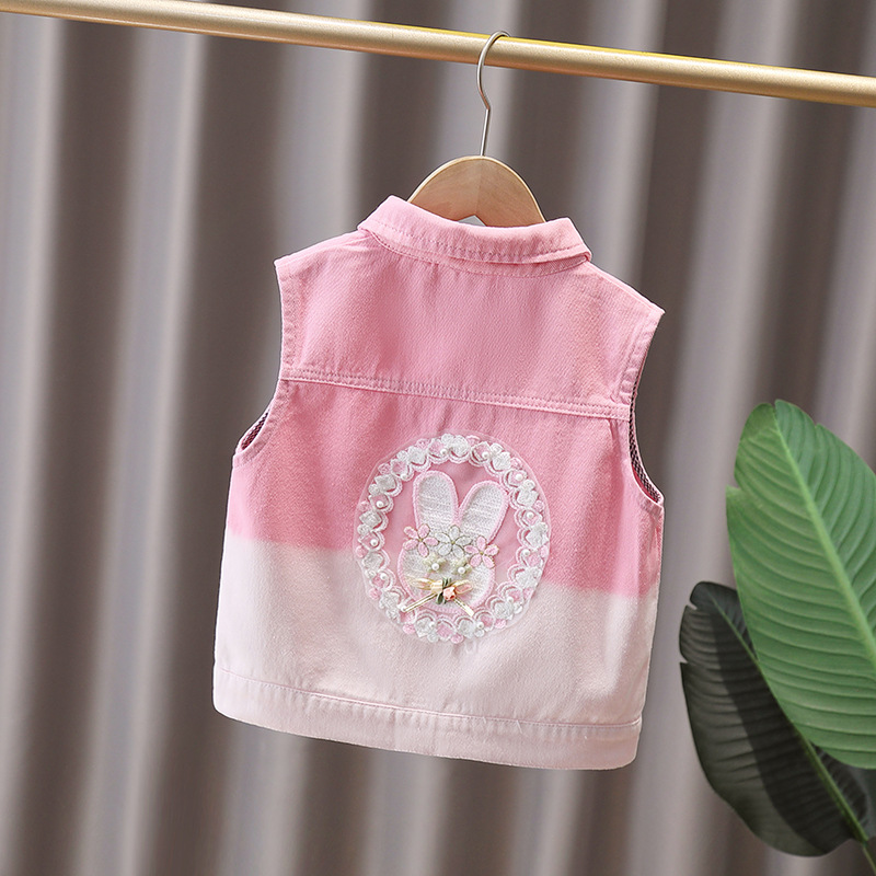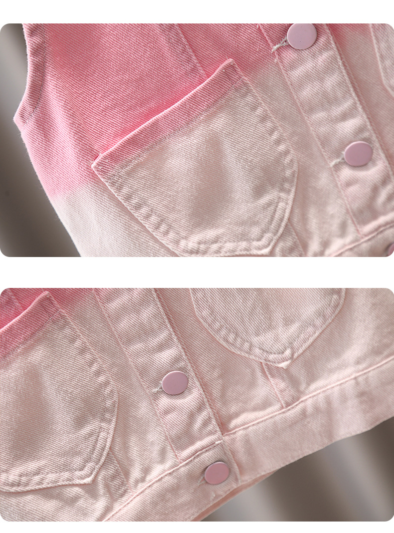 그라디언트 핑크 소녀의 봄 조끼 새로운 서양 스타일 만화 아기 소녀의 봄과 가을 어린이 자수 조끼 탑스토어 가기
