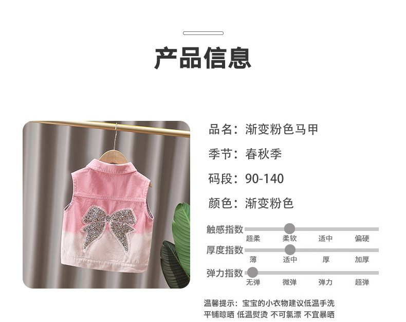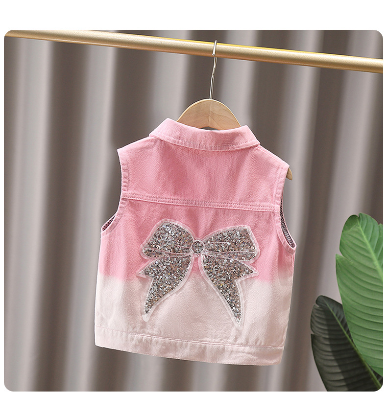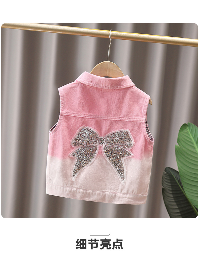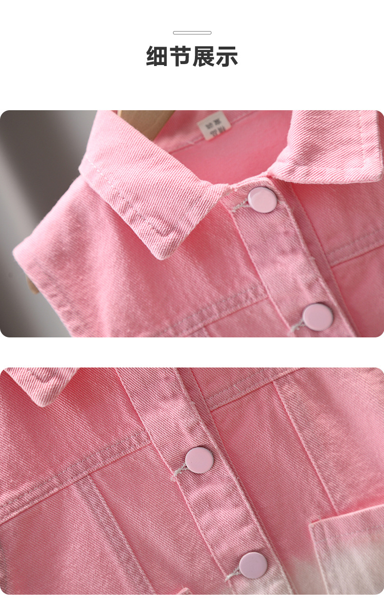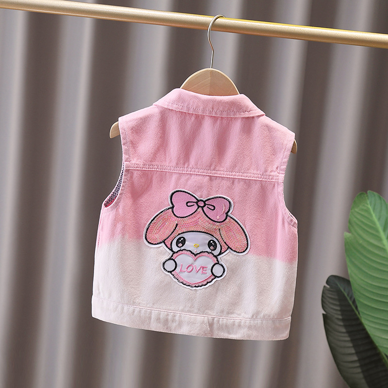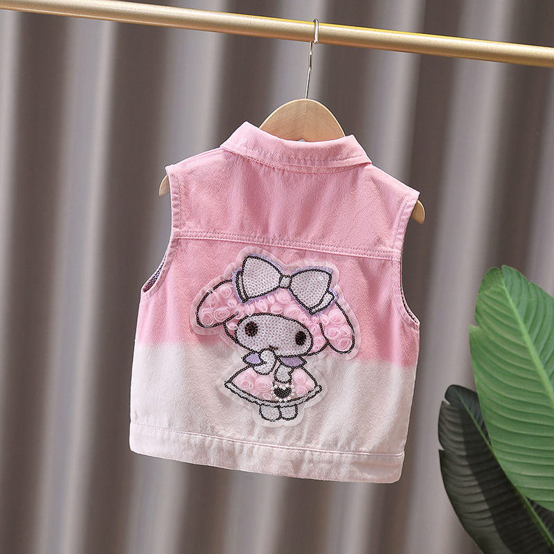 그라디언트 핑크 소녀의 봄 조끼 새로운 서양 스타일 만화 아기 소녀의 봄과 가을 어린이 자수 조끼 탑스토어 가기