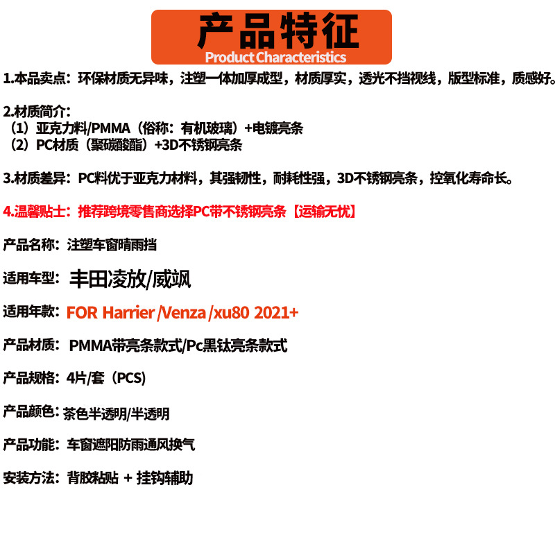 • TOYOTA HARRIER XU80/VENZA 2021+ pc, 3D 블랙 티타늄 브라이트 스트립, 창문 비 또는 빛 실드 4개 포함