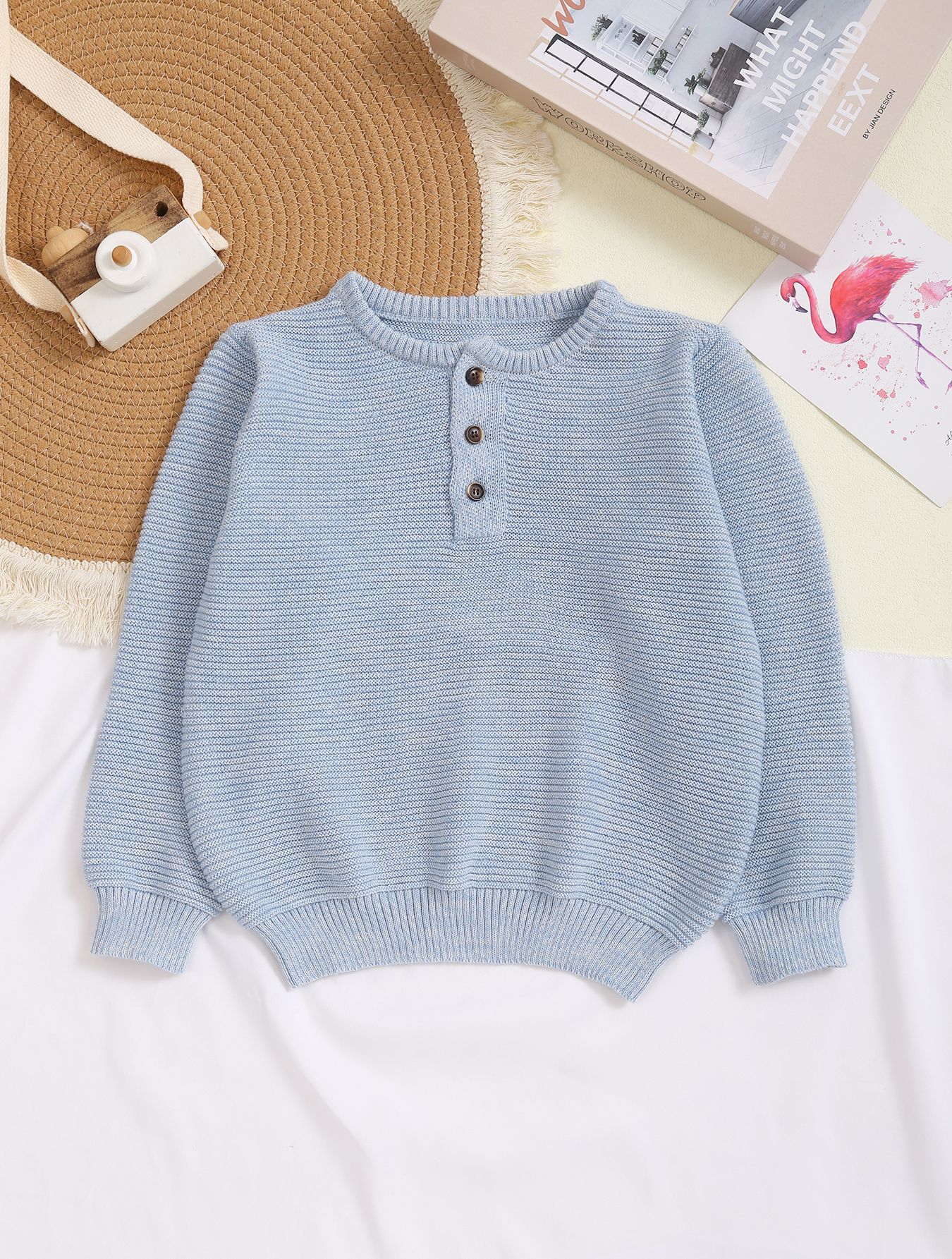 ine2025 새로운 소년 니트 라운드 넥 솔리드 컬러 풀오버 스웨터스토어 가기