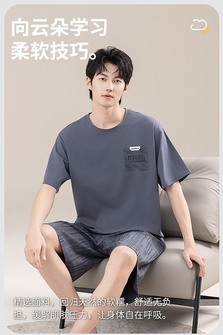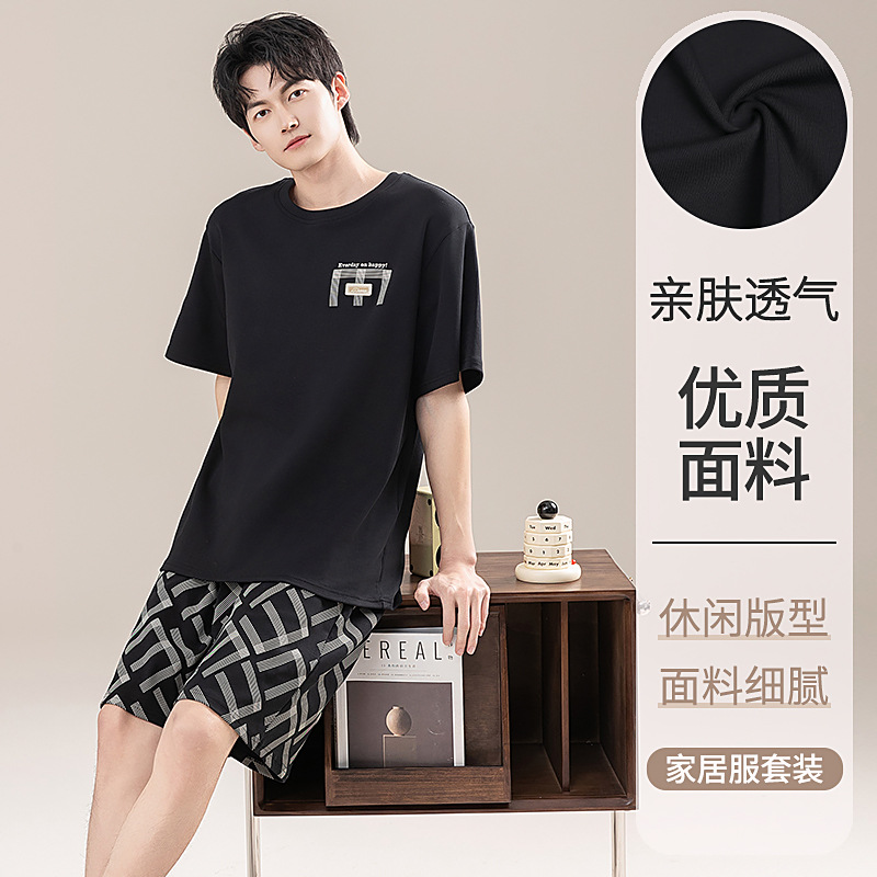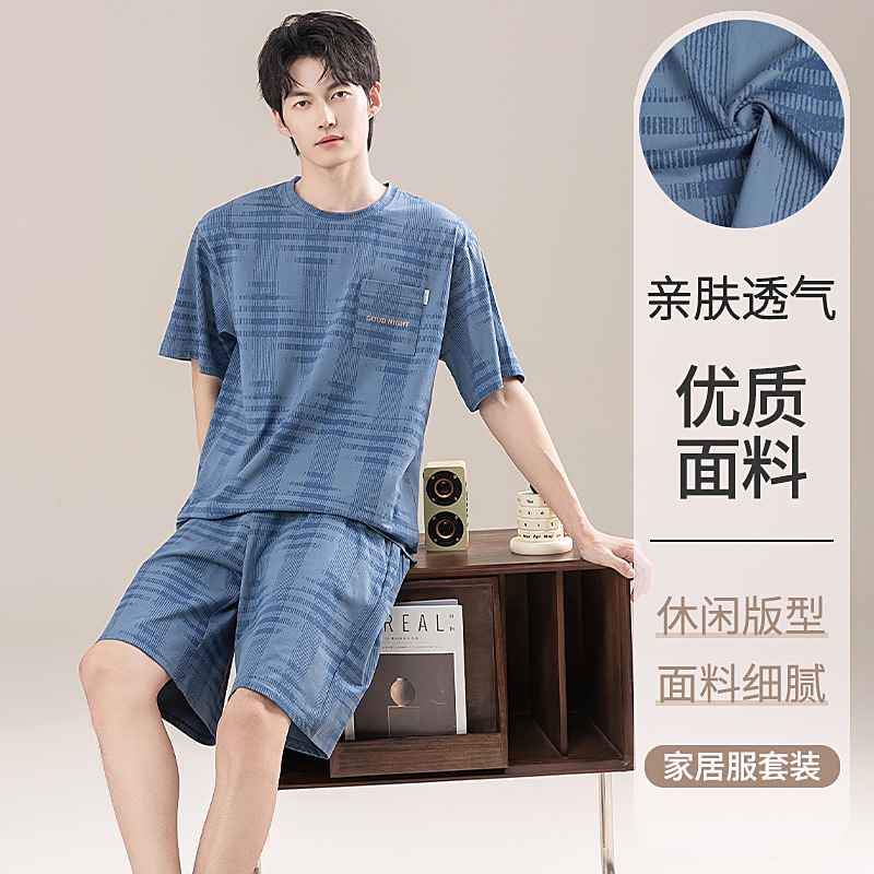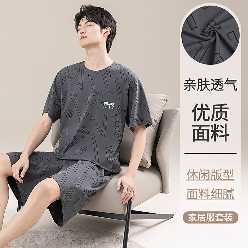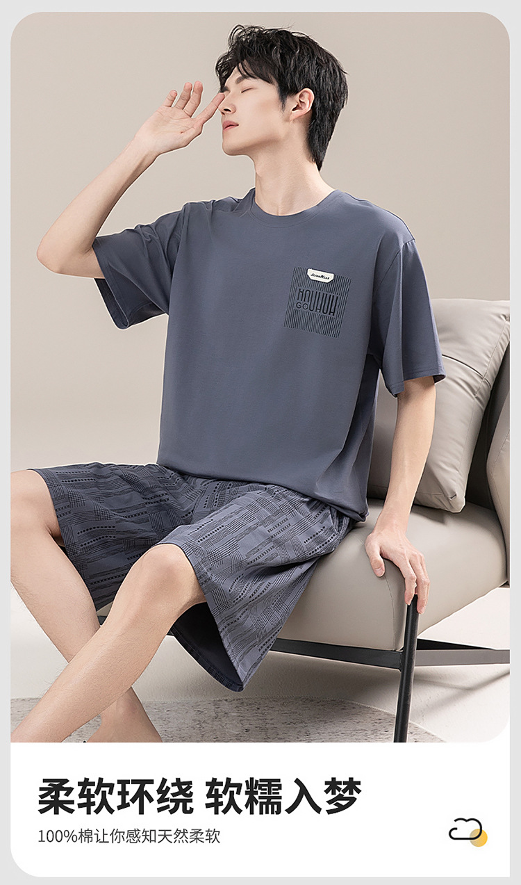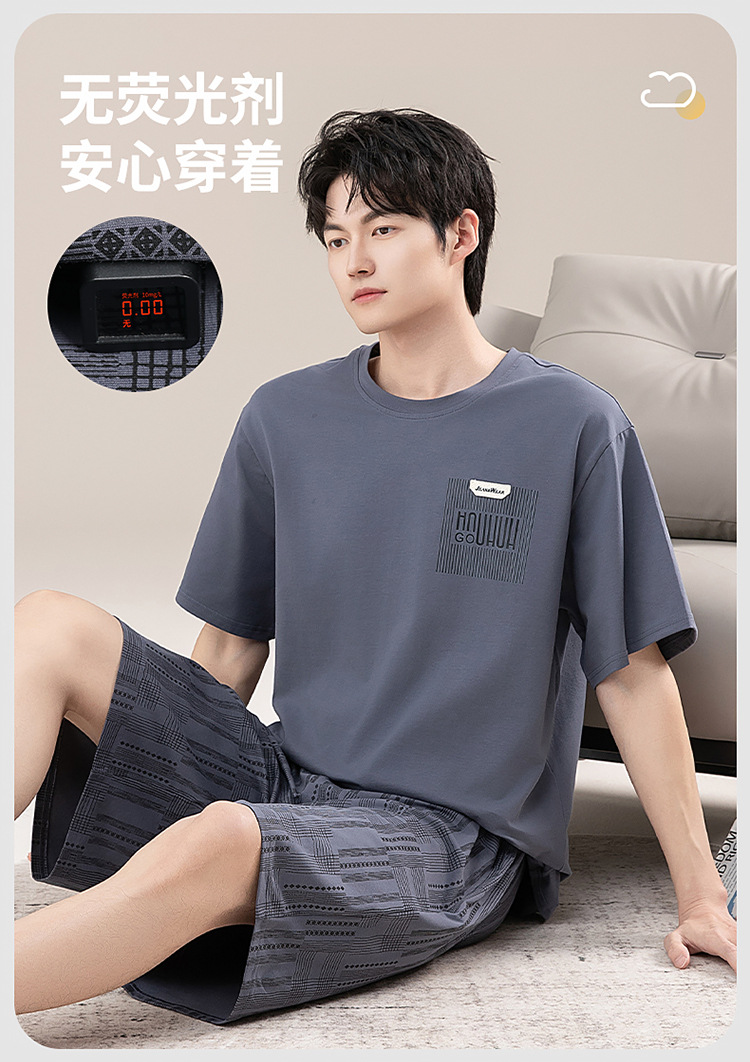 잠옷 남성용 여름 순면 얇은 반팔 반바지 세트 남성용 순면 캐주얼 플러스 사이즈 아웃웨어 홈 의류스토어 가기