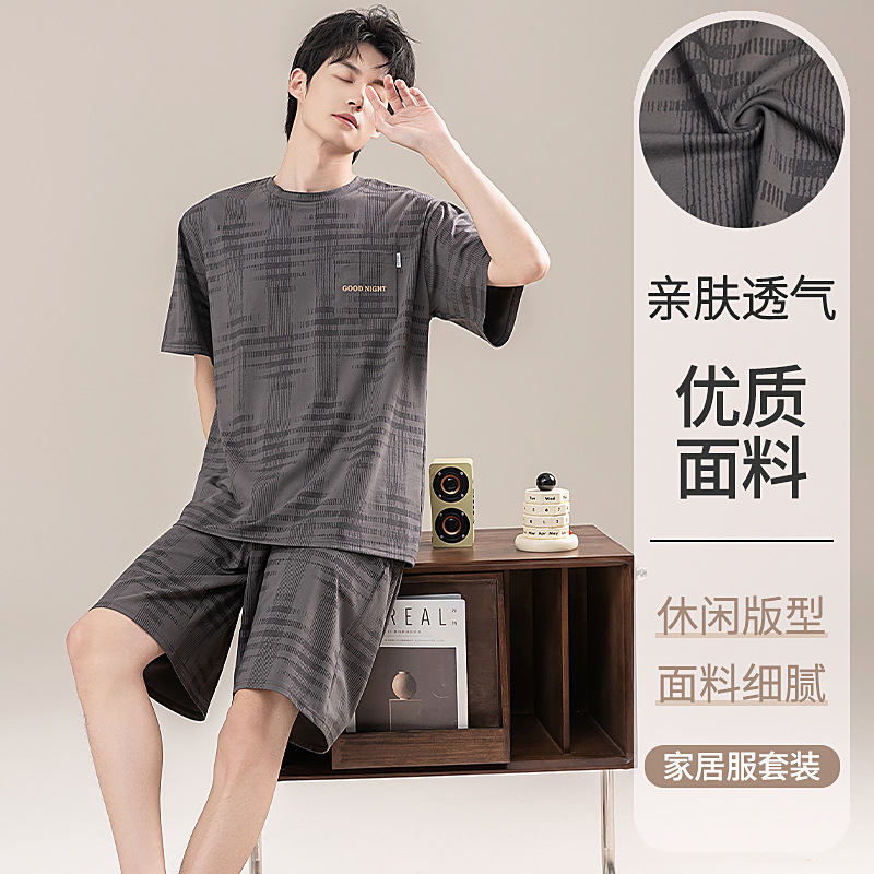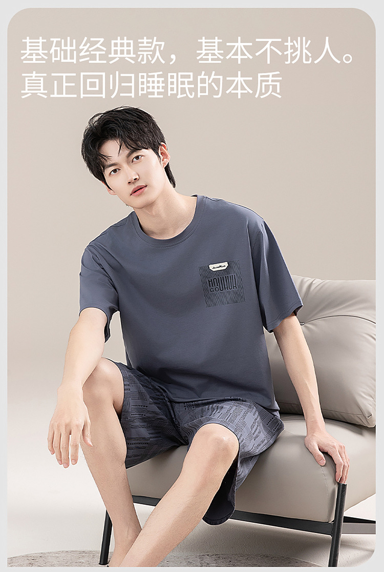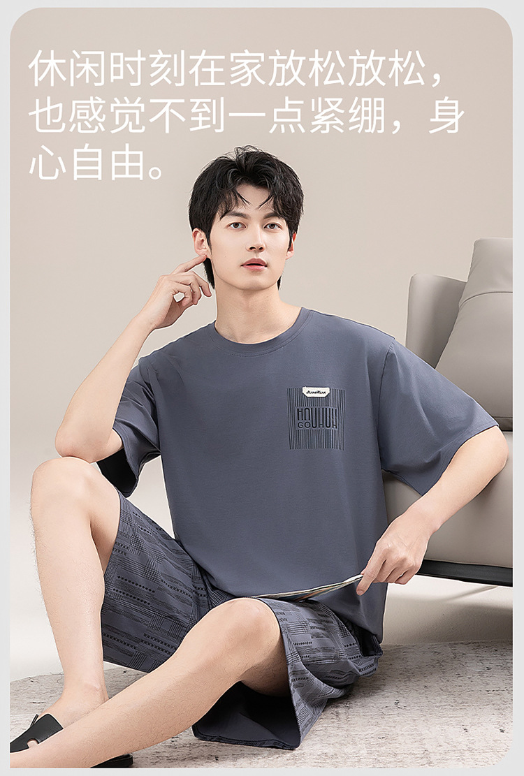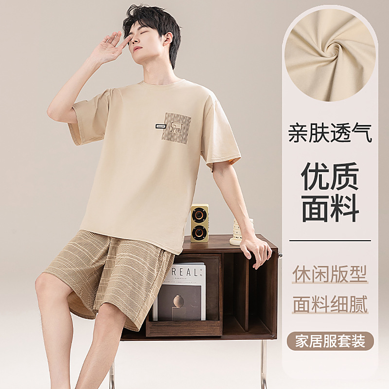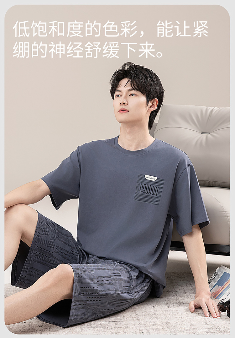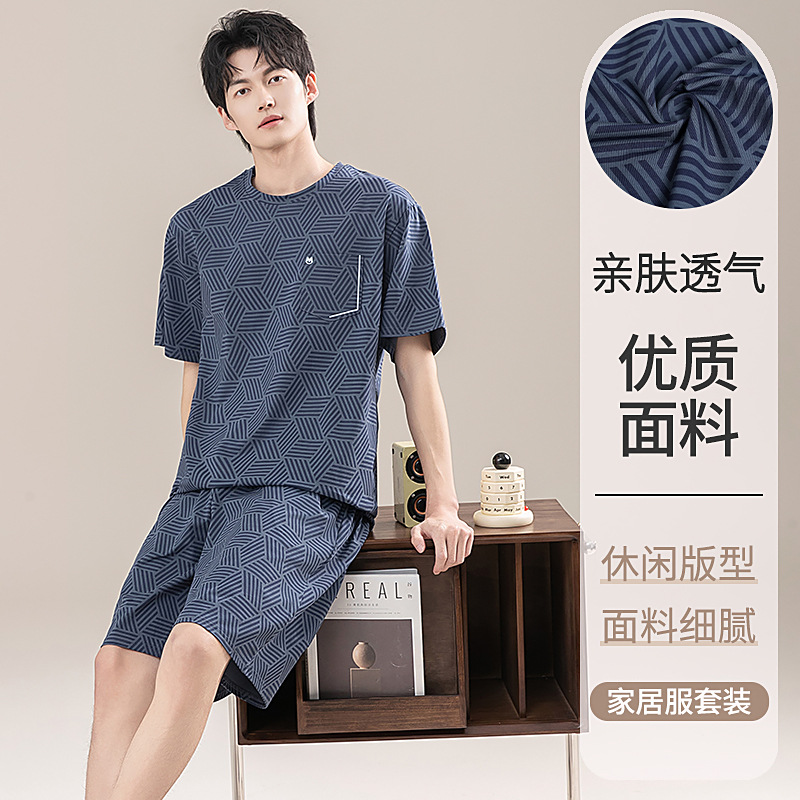 잠옷 남성용 여름 순면 얇은 반팔 반바지 세트 남성용 순면 캐주얼 플러스 사이즈 아웃웨어 홈 의류스토어 가기