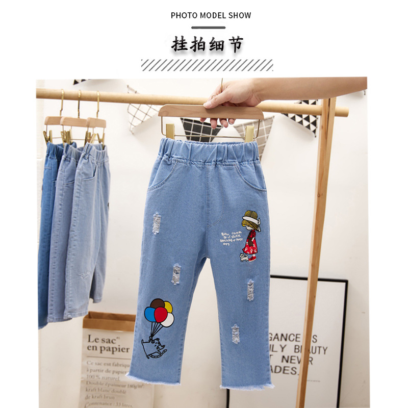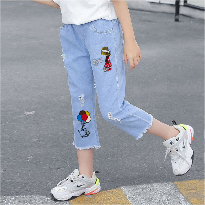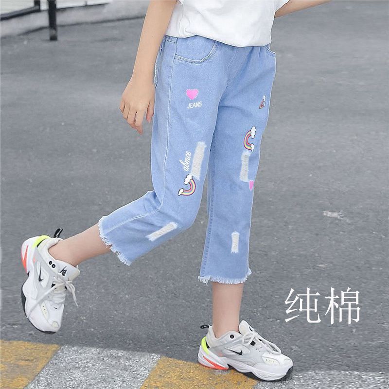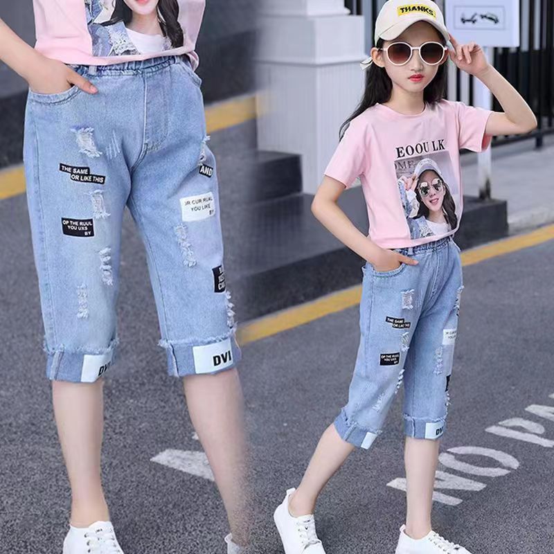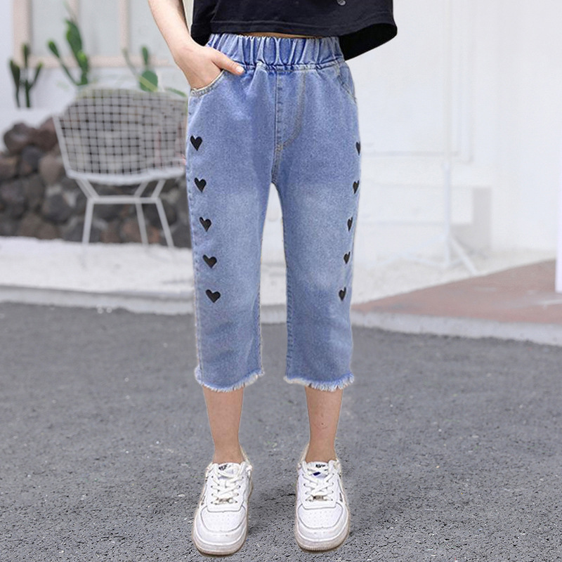 여자 데님 자른 바지 새로운 도착 경량 중대형 어린이 여름 넓은 다리 바지 소녀 반바지 자른 아기 캐주얼 바지스토어 가기