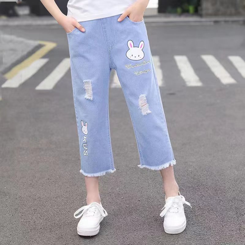 여자 데님 자른 바지 새로운 도착 경량 중대형 어린이 여름 넓은 다리 바지 소녀 반바지 자른 아기 캐주얼 바지