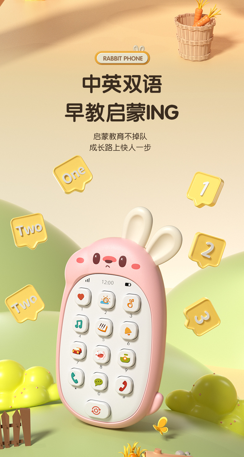 어린이 휴대 전화 장난감 0-1 세 소년과 소녀 아기 교육 조기 교육 모델 음악 전화 아기는 씹을 수 있습니다