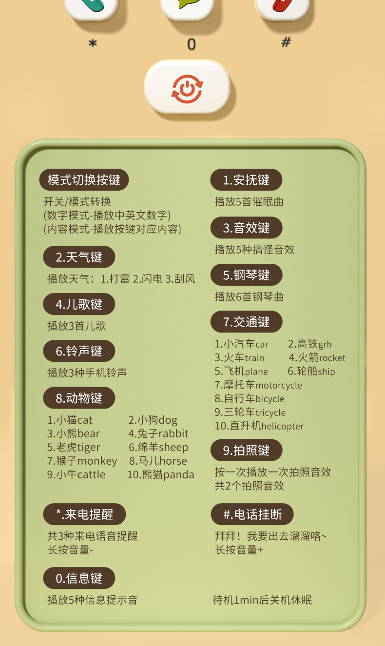 • 토끼 휴대폰 노란색(배터리 드라이버를 직접 가져오세요)