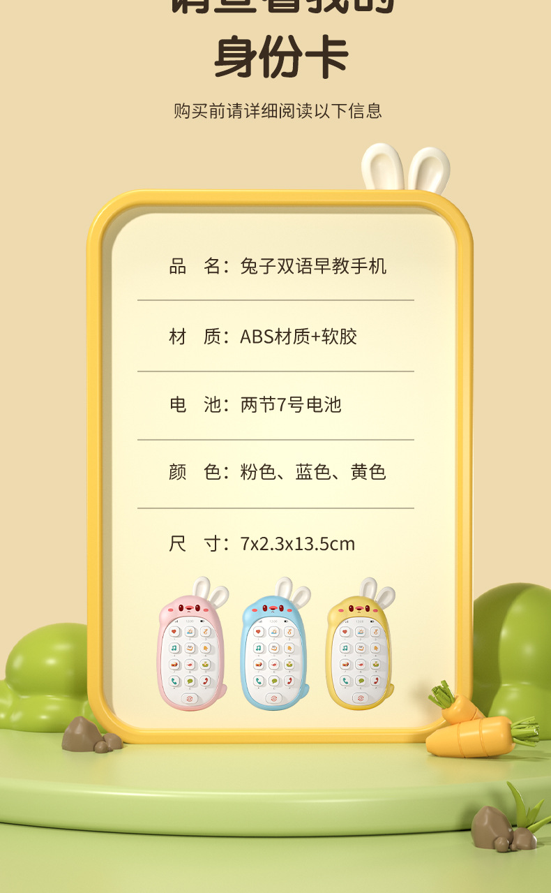 • 토끼 휴대폰 노란색에는 AA 배터리 2개와 드라이버가 함께 제공됩니다.