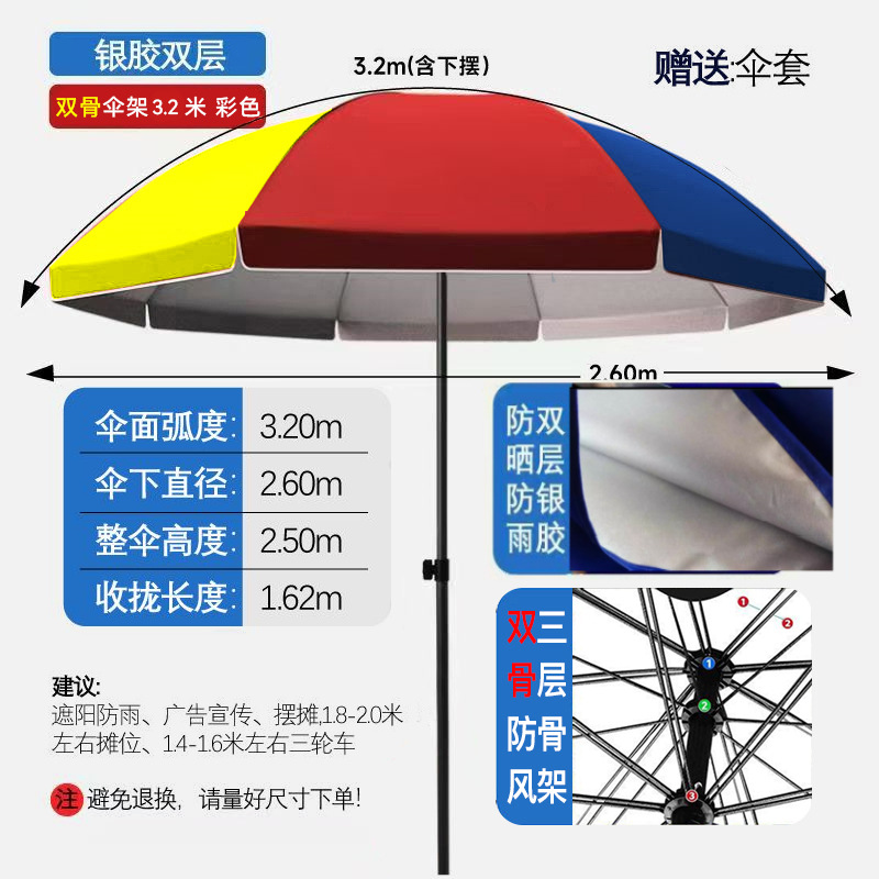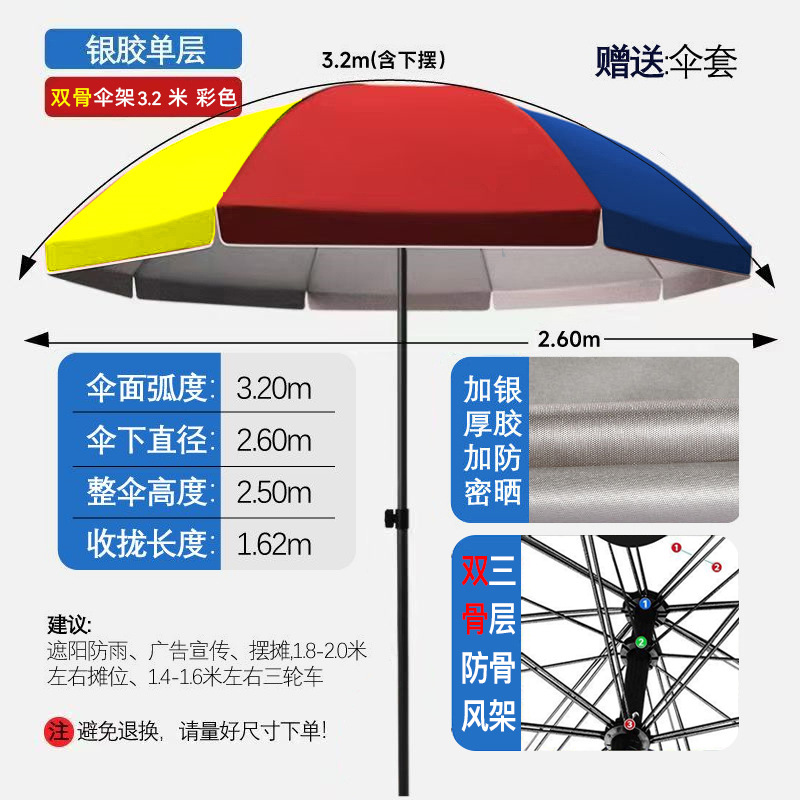 • [더블본더블레이어] 3.2m + 컬러풀 더블본 더블레이어 실버 플라스틱 우산