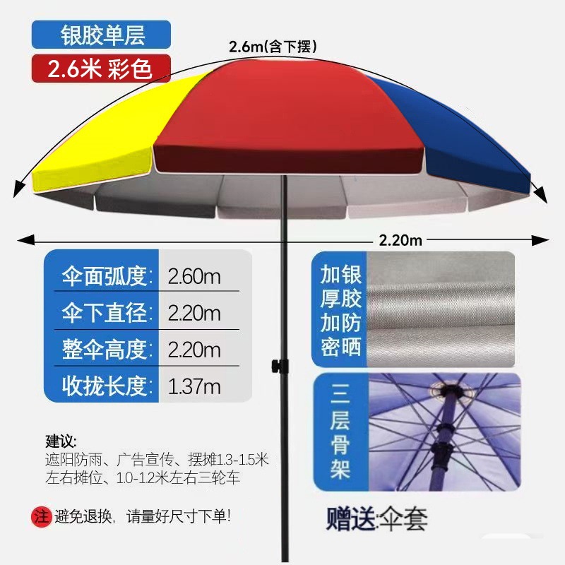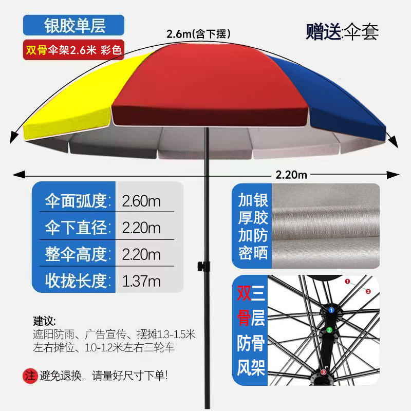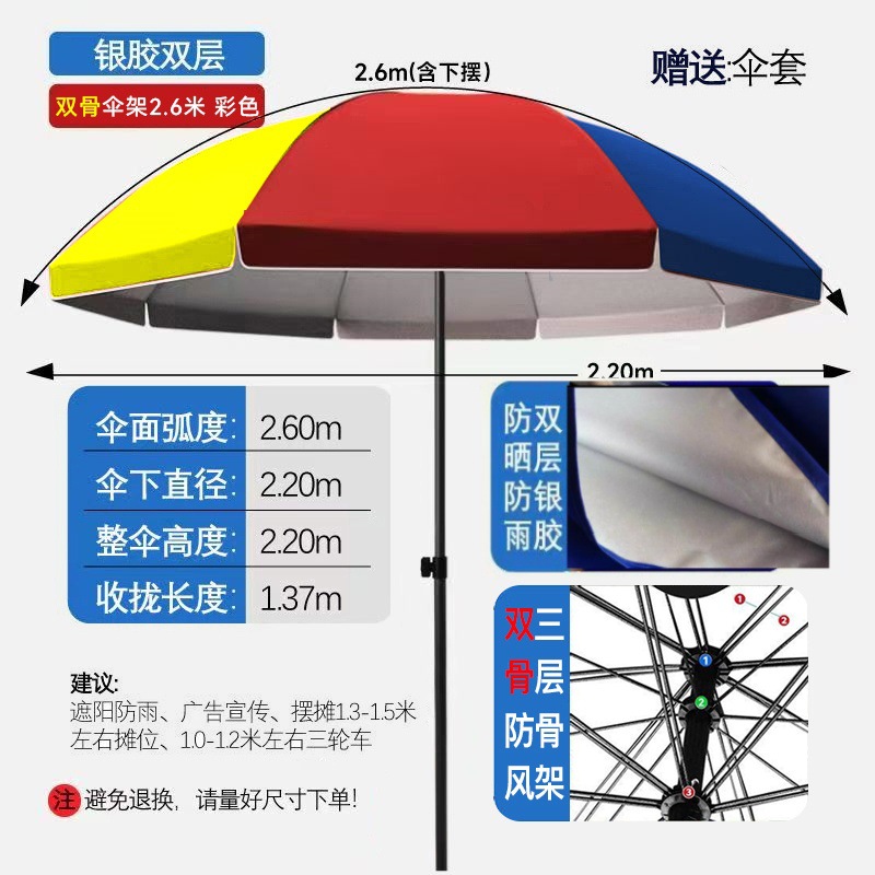 • [더블본방풍] 2.6m + 컬러풀 더블본 실버 플라스틱 우산