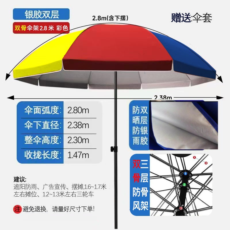 • [더블본방풍] 2.8m + 컬러풀 더블본 실버 플라스틱 우산