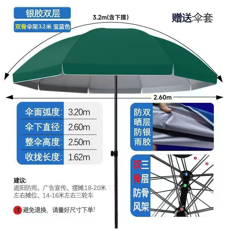 • [더블본더블레이어] 3.2m + 다크그린 더블본 더블레이어 실버 플라스틱 우산