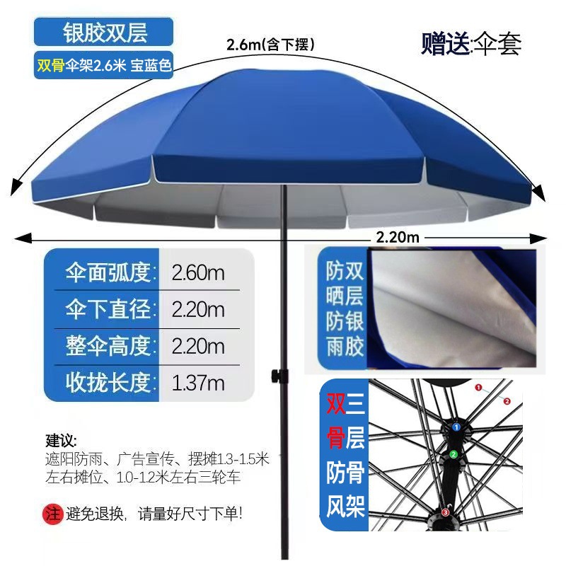 • [더블본더블레이어] 2.6m + 블루더블본더블레이어 실버플라스틱우산