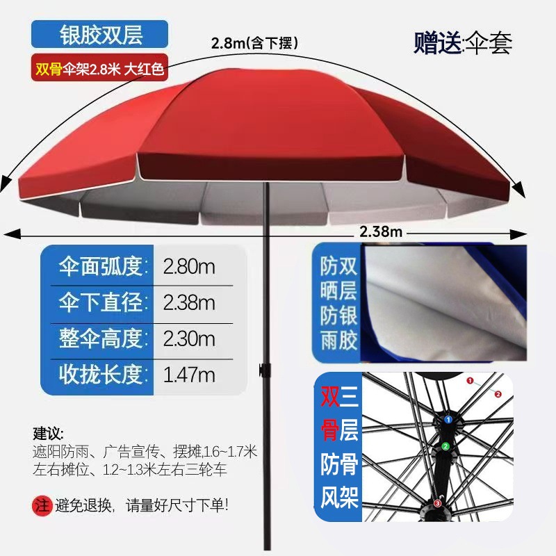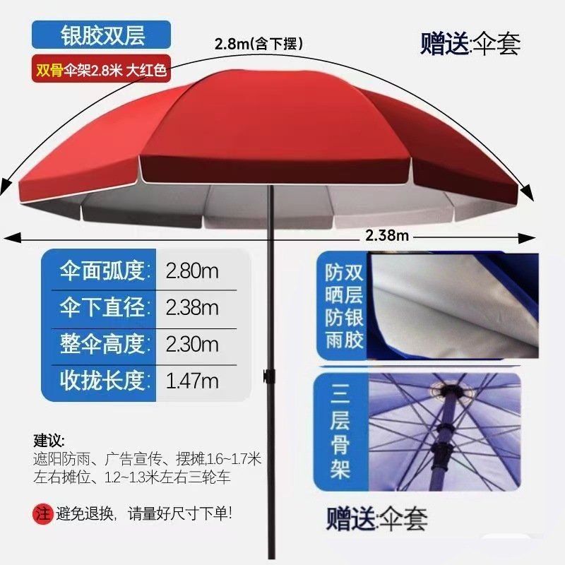 • [더블본더블레이어] 2.8m + 레드더블본더블레이어 실버플라스틱우산