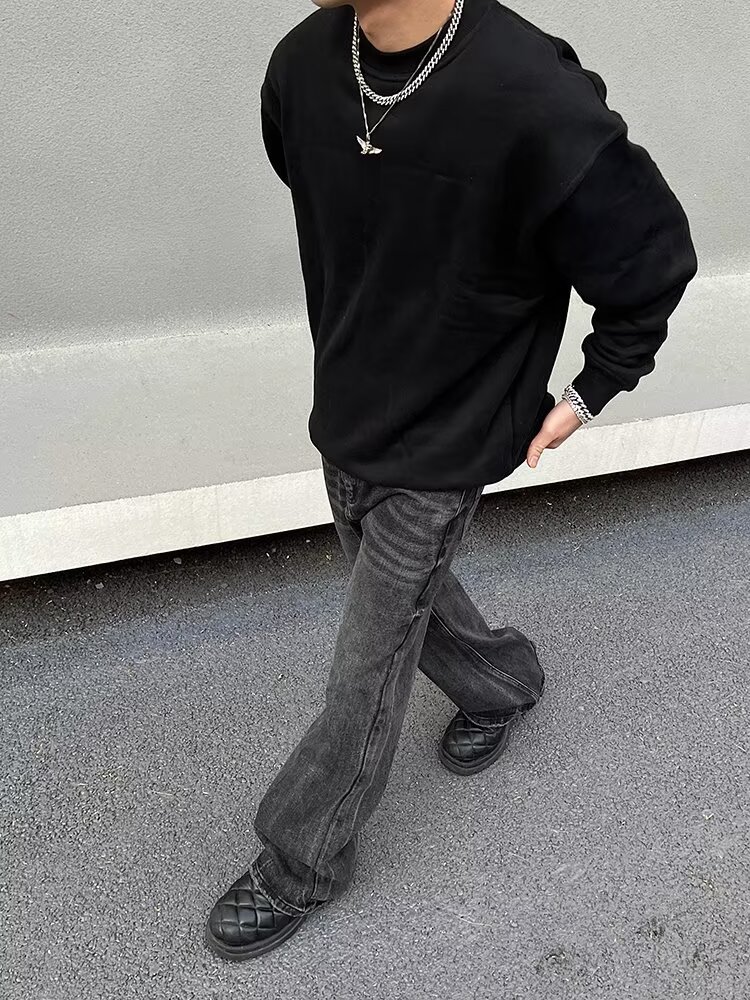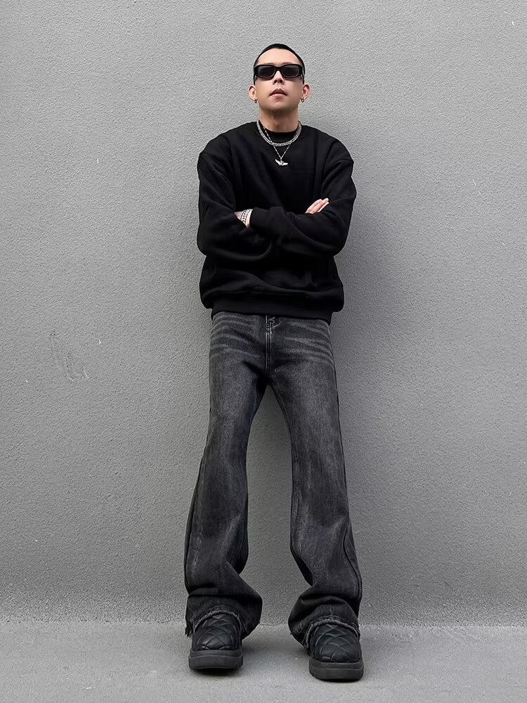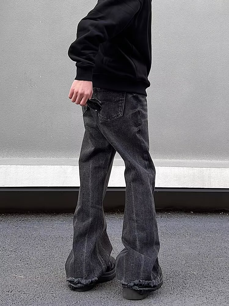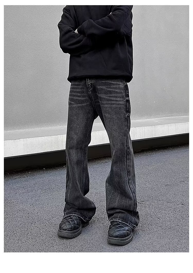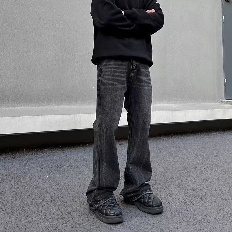 크로스보더 클린핏 팬츠 아메리칸 하이스트리트 워싱 블랙 그레이 청바지 남성 하이엔드 핸섬 부츠컷 팬츠스토어 가기