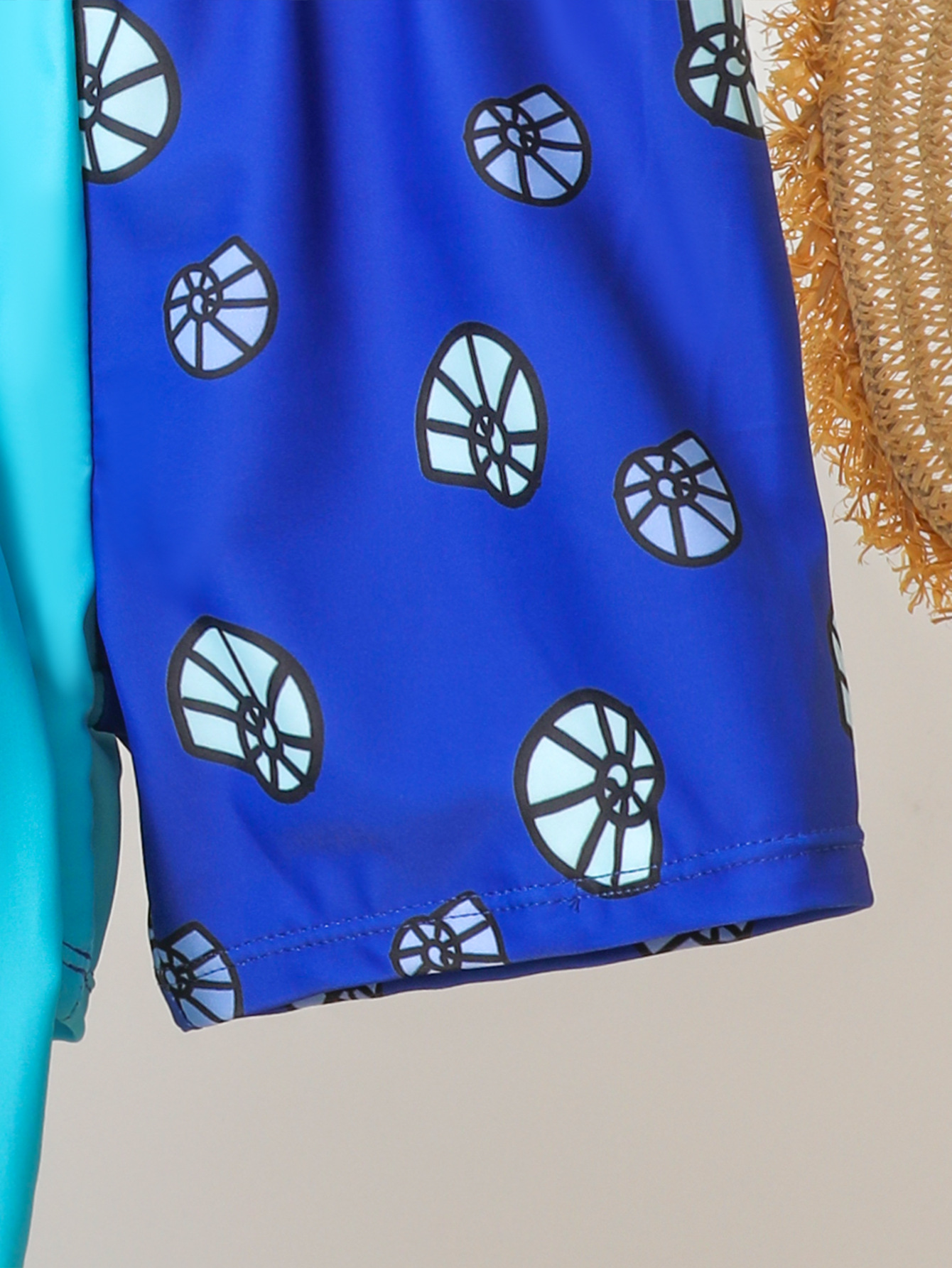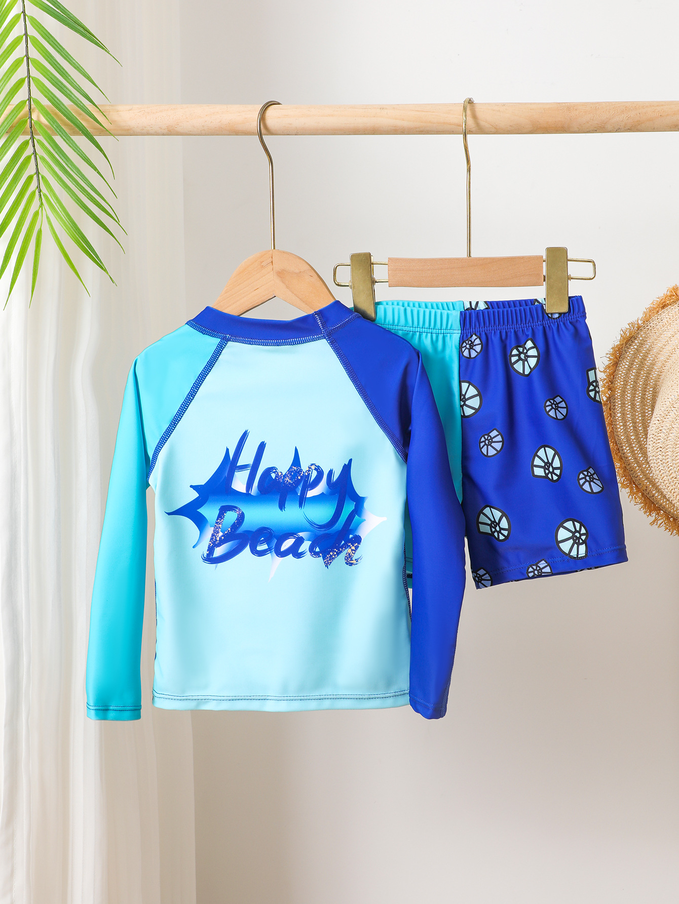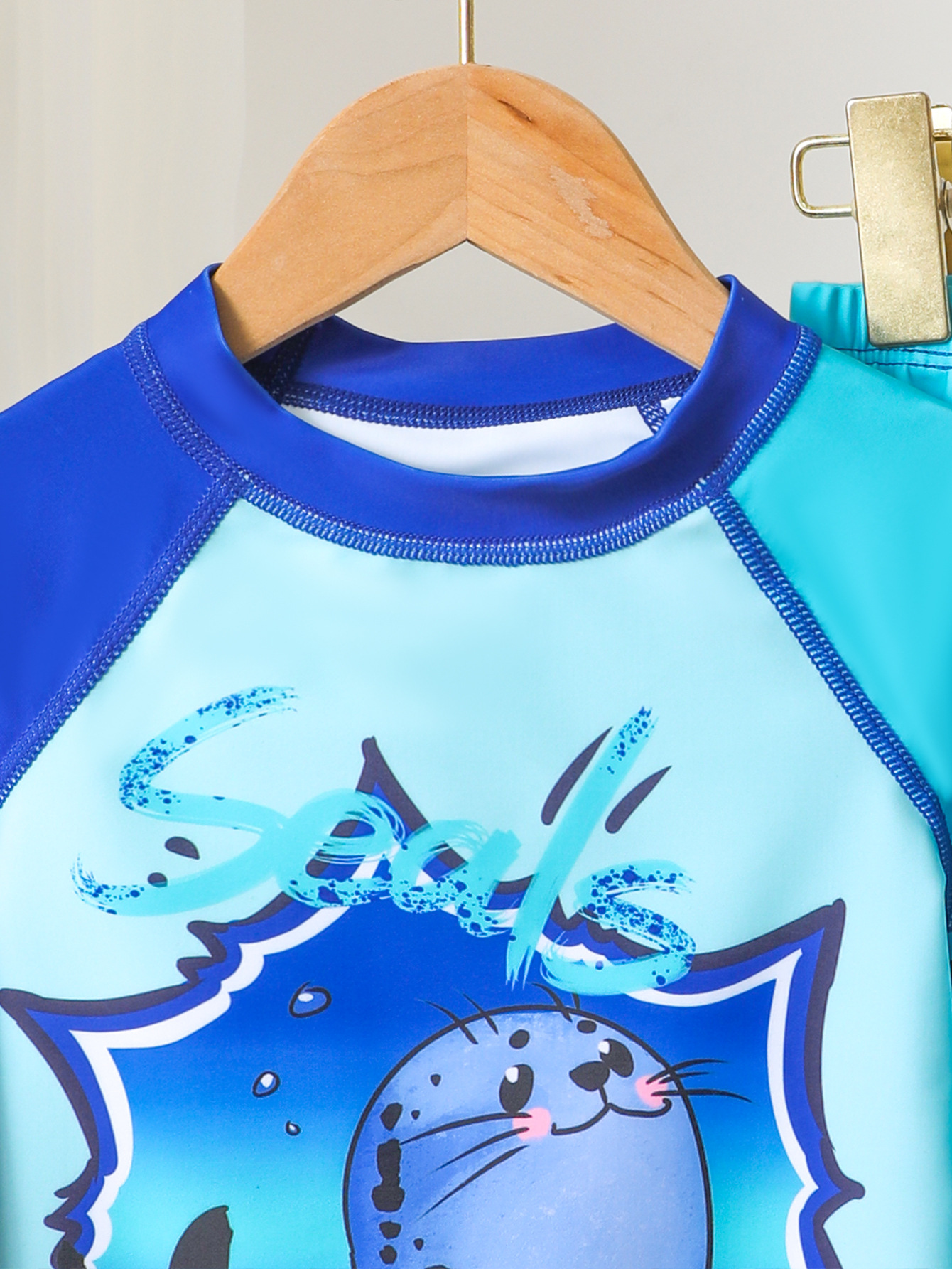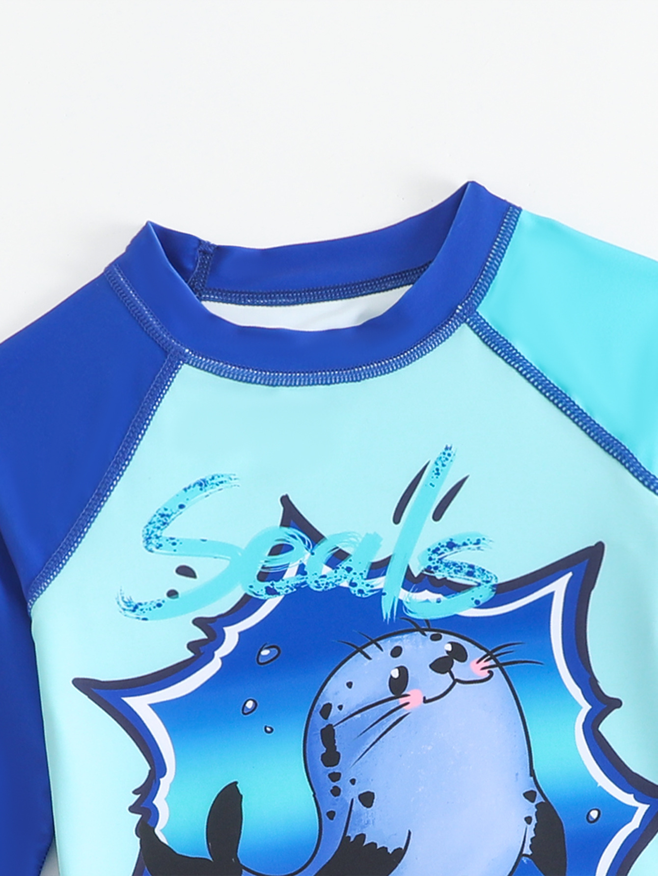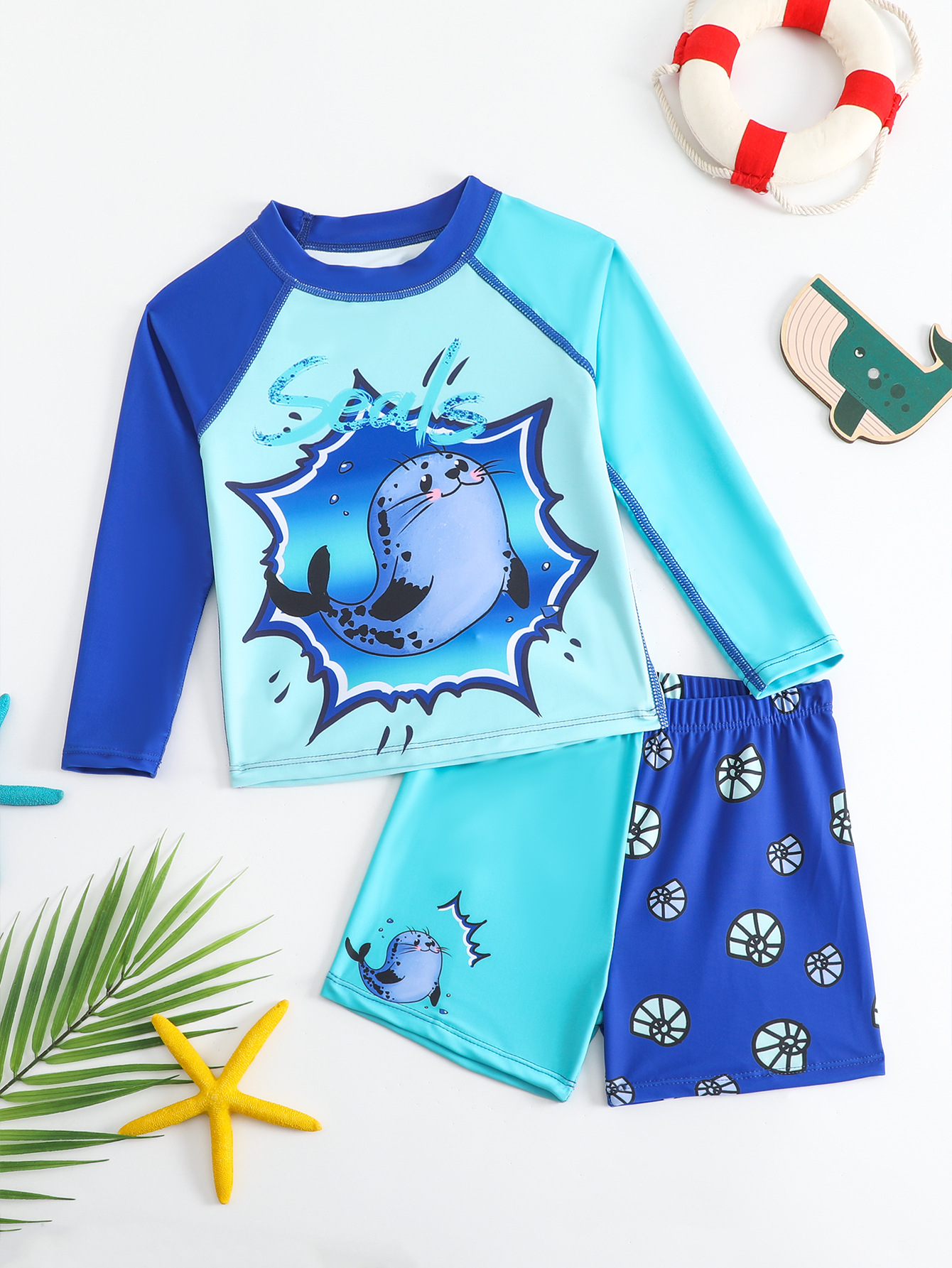 대외 무역 어린이 잠수복 스플릿 수영복 긴팔 수영복 소형, 중형 및 대형 어린이 자외선 차단 수영복 새로운 만화 수영