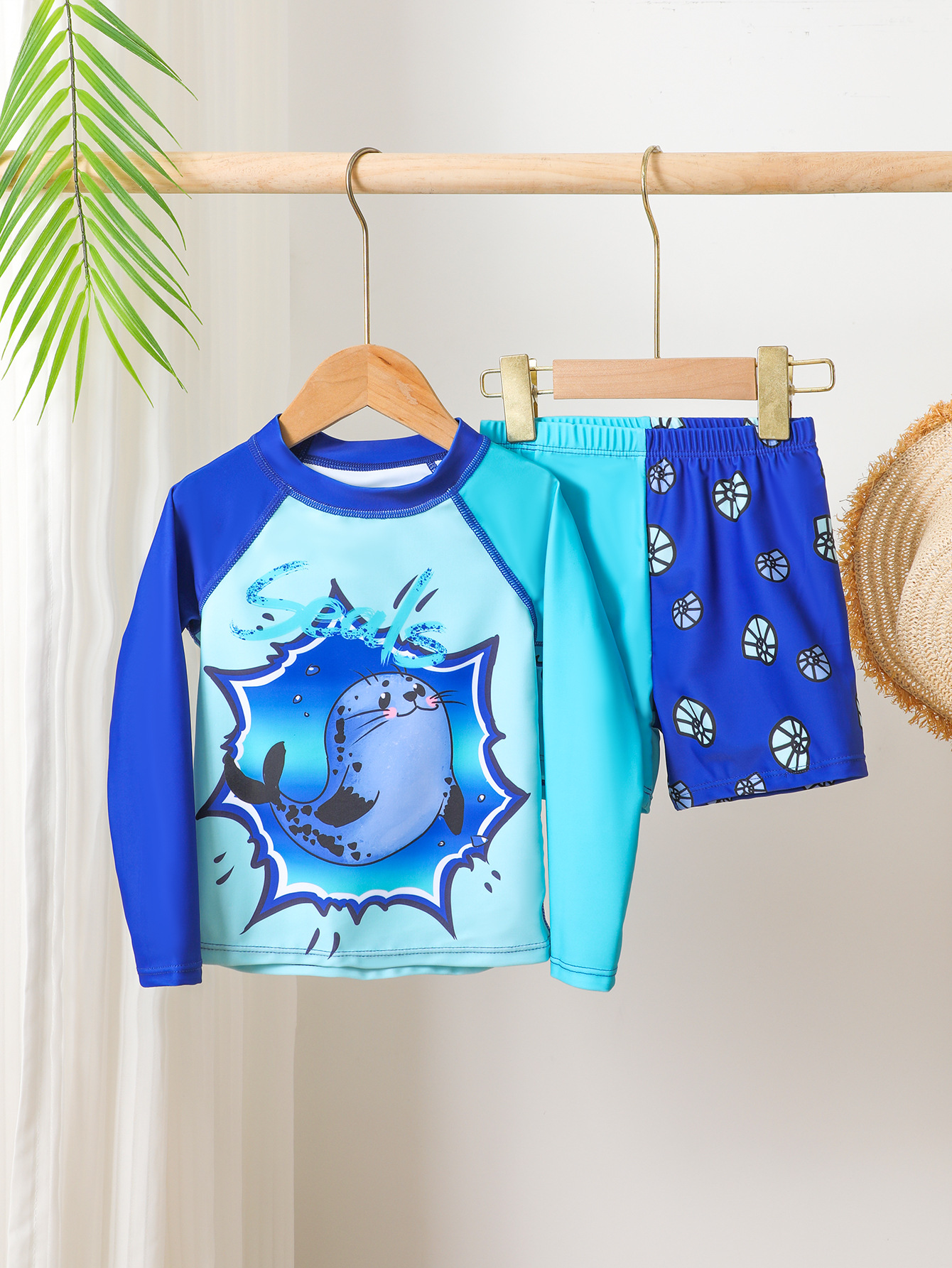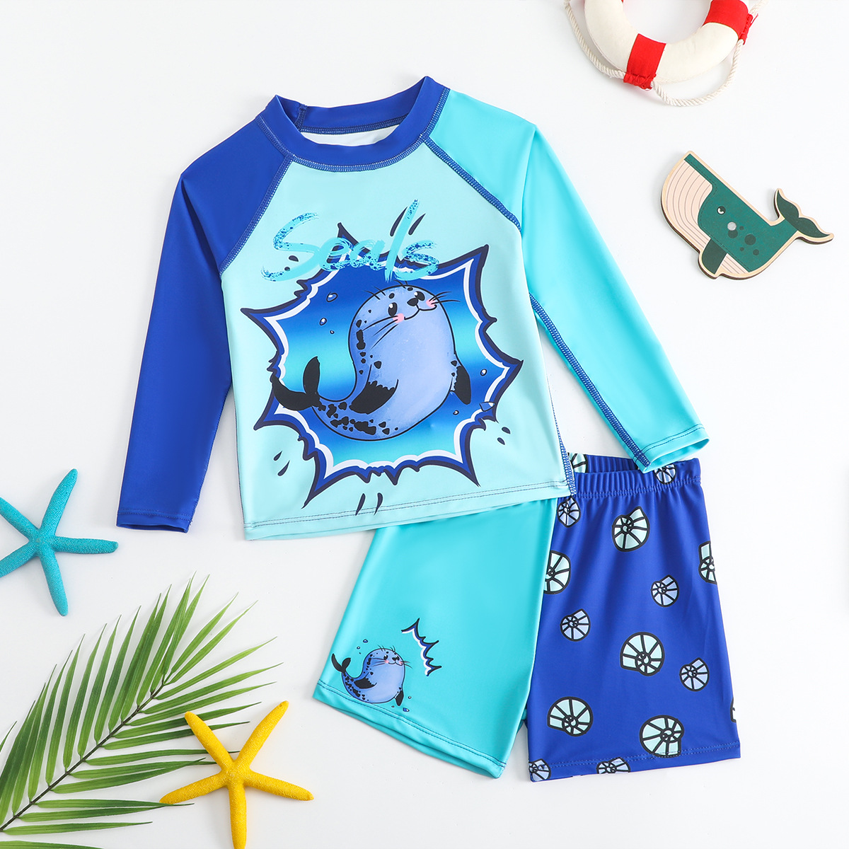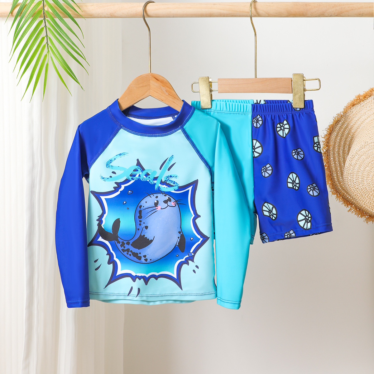 대외 무역 어린이 잠수복 스플릿 수영복 긴팔 수영복 소형, 중형 및 대형 어린이 자외선 차단 수영복 새로운 만화 수영스토어 가기