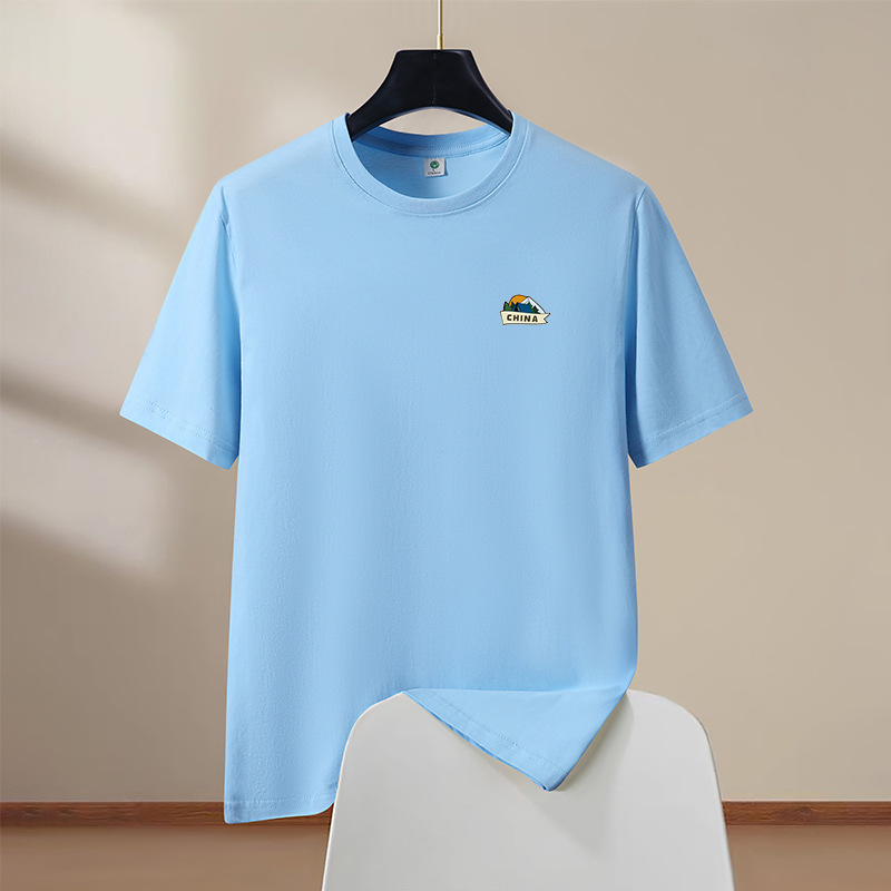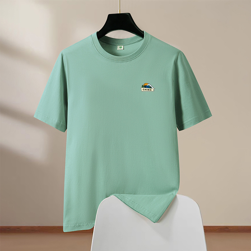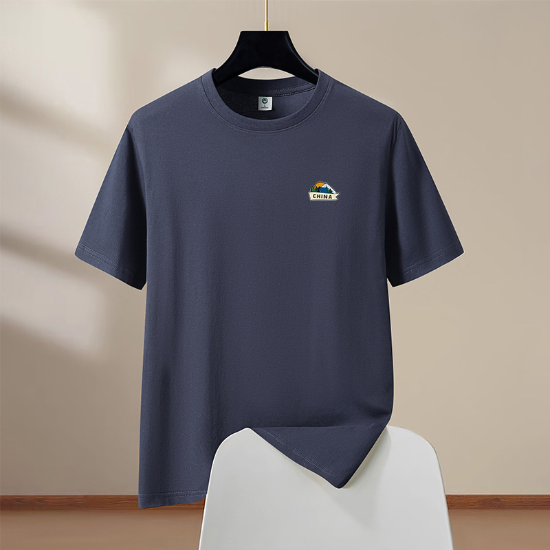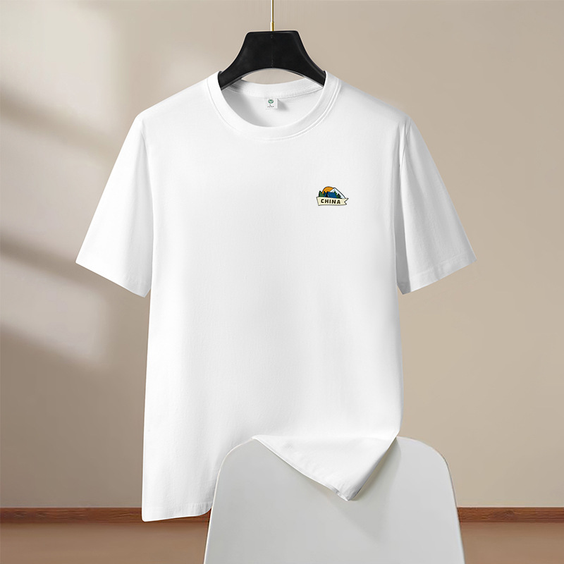 반팔 티셔츠 남성 여름 신작 라운드 넥 순수 코튼 트렌디 대형 남성 홍콩 스타일 학생 탑 하단 반팔 드롭 배송스토어 가기