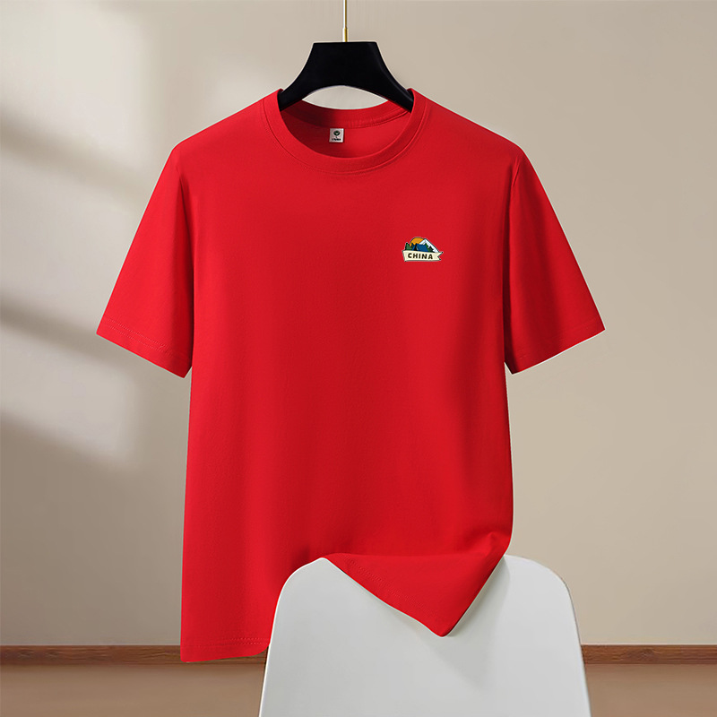 반팔 티셔츠 남성 여름 신작 라운드 넥 순수 코튼 트렌디 대형 남성 홍콩 스타일 학생 탑 하단 반팔 드롭 배송