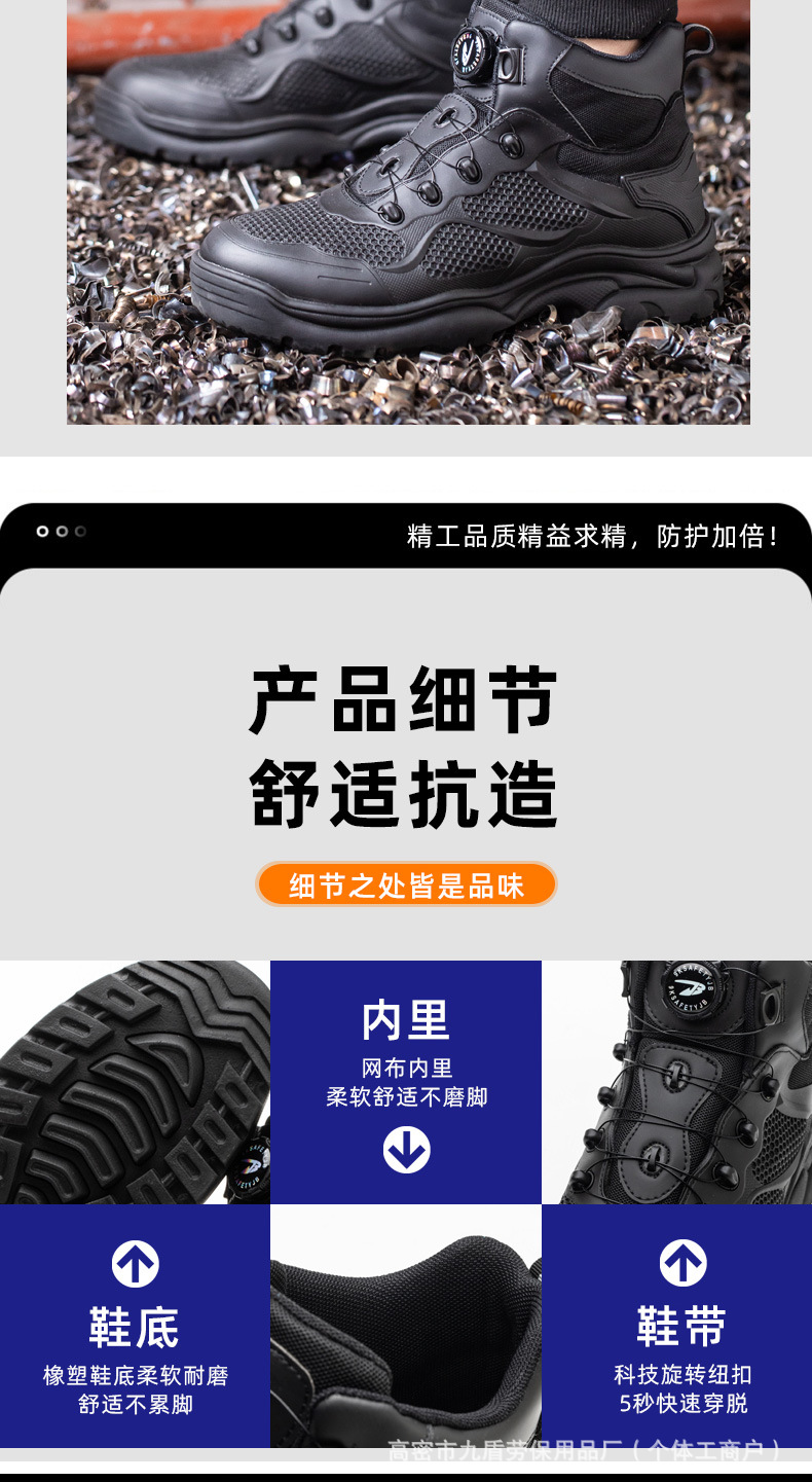 제조업체 도매 Xiyin 노동 보호 신발, 내마모성 신발, 장시간 서 있어도 피곤하지 않음, 단추 탄성, 스매싱 방지 및 펑크 방지 안전 보호 부츠