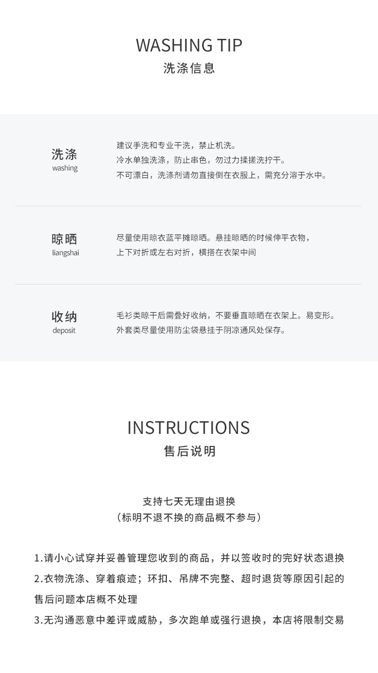 4.所有质量、调换尺码等问题产生的退、换货,请按退货流程申请退款,重拍即可。