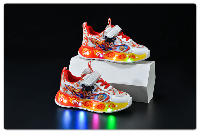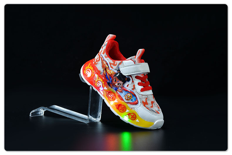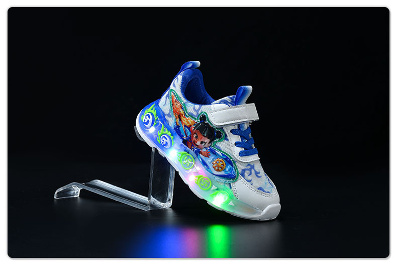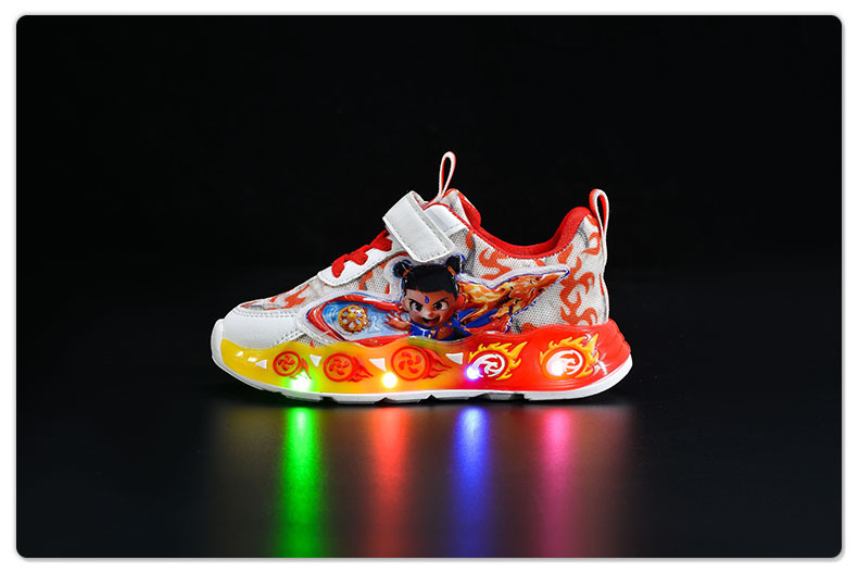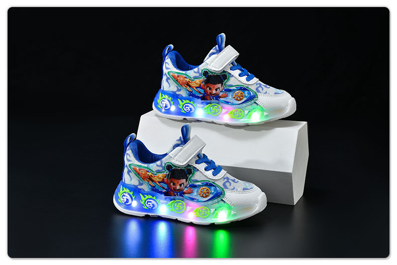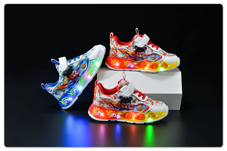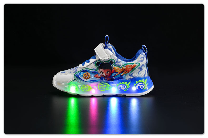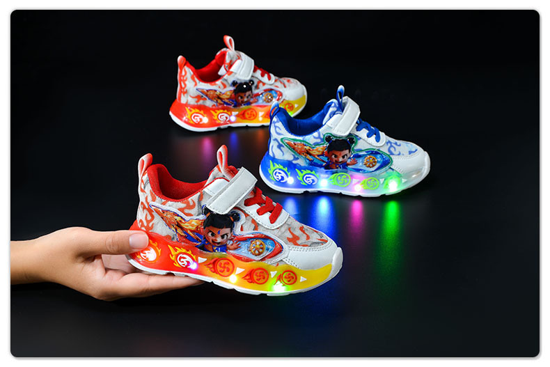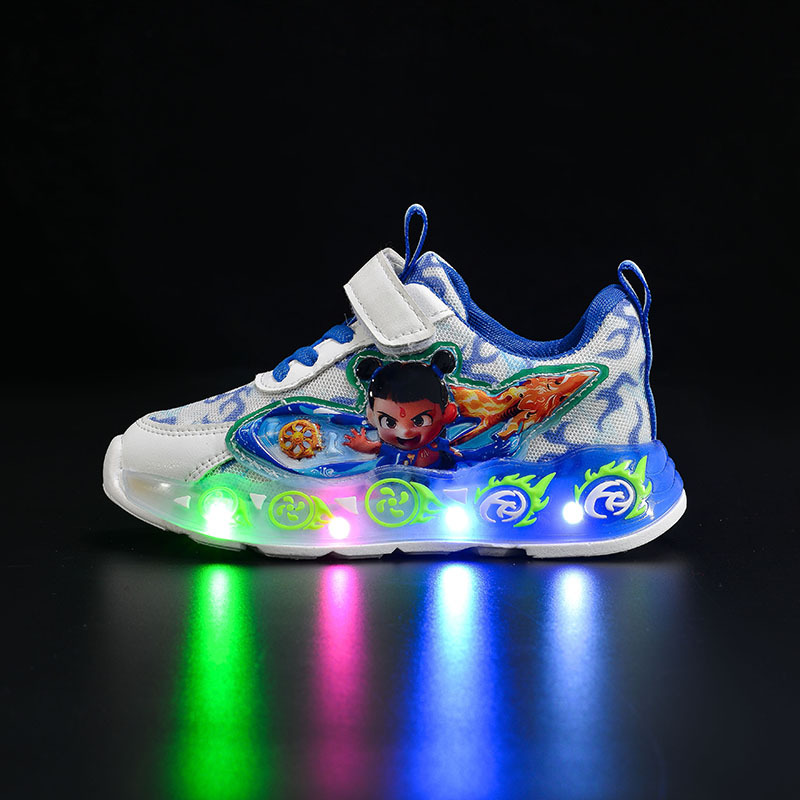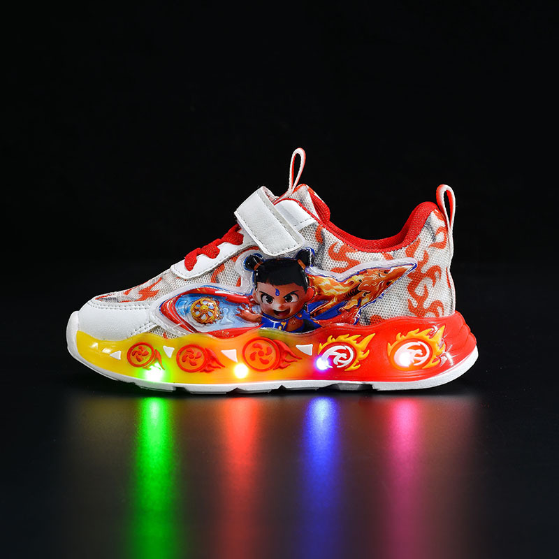 2025 년 봄과 여름 운동화 숨을 쉴 수있는 소년 조명 새로운 어린이 학생들이 부드러운 밑창 달리기 빛나는 신발을 터뜨립니다.
