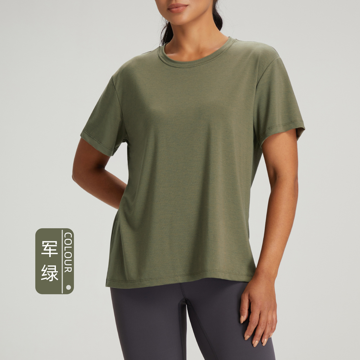 아테나 룰루 메리노 울 요가 의류 여성용 알몸 느슨한 감각 슬리밍 스포츠 피트니스 탑 반팔 티셔츠