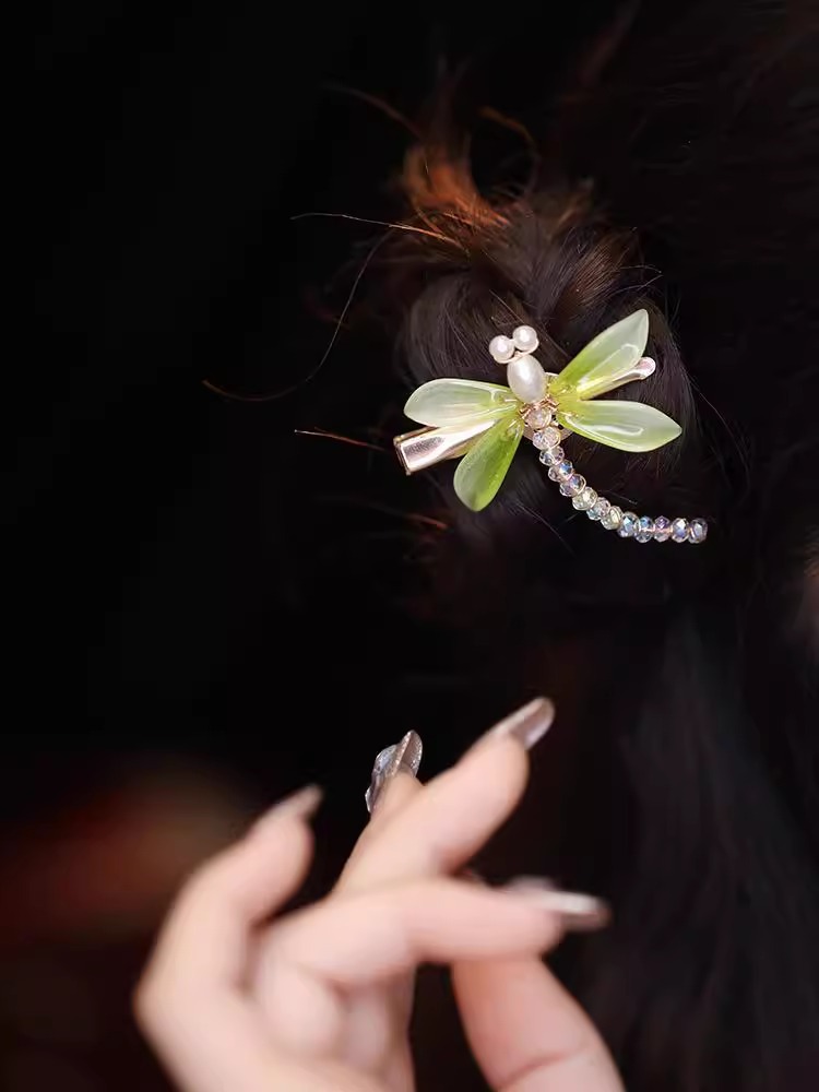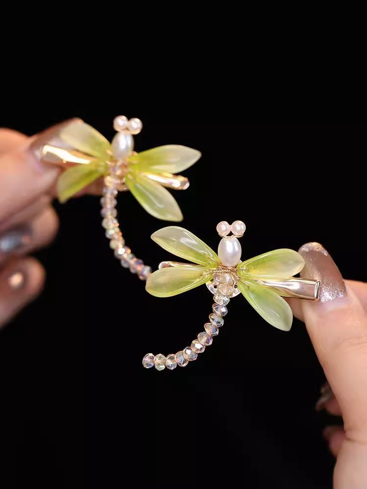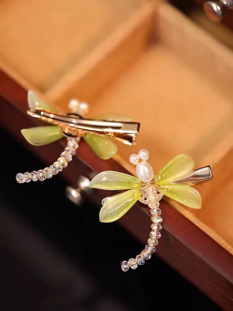 중국 스타일 유약 작은 잠자리 골동품 헤어 액세서리 헤어핀 매일 신선한 헤드폰 클립 한푸 어린이 사이드 클립 헤드웨어스토어 가기