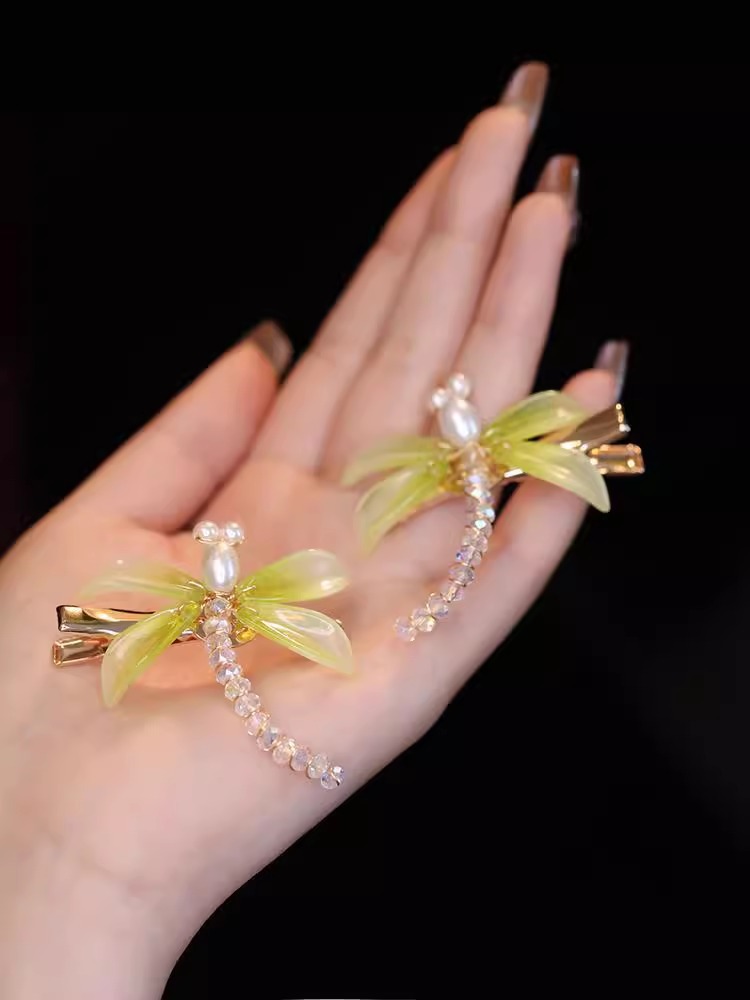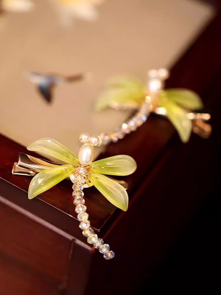 중국 스타일 유약 작은 잠자리 골동품 헤어 액세서리 헤어핀 매일 신선한 헤드폰 클립 한푸 어린이 사이드 클립 헤드웨어