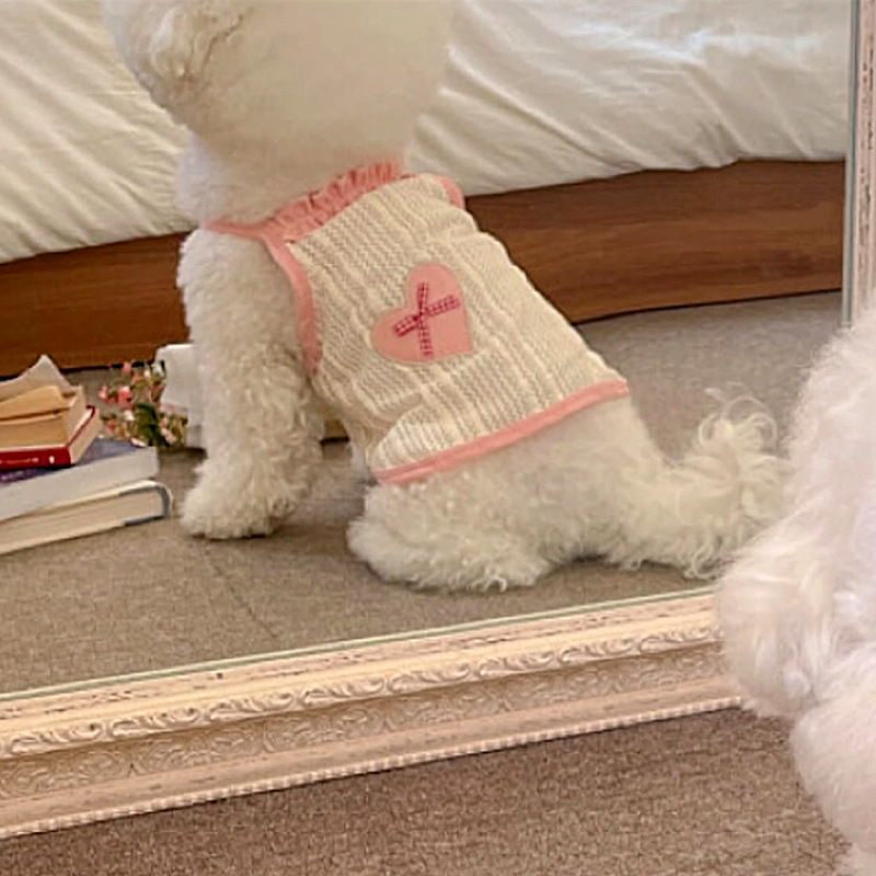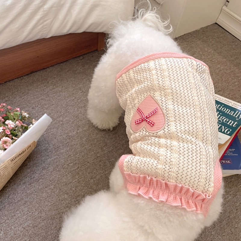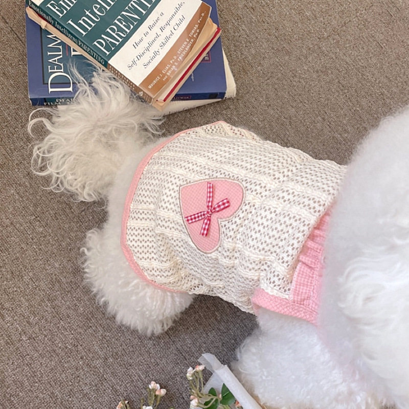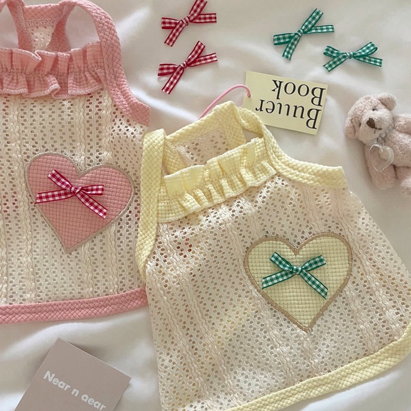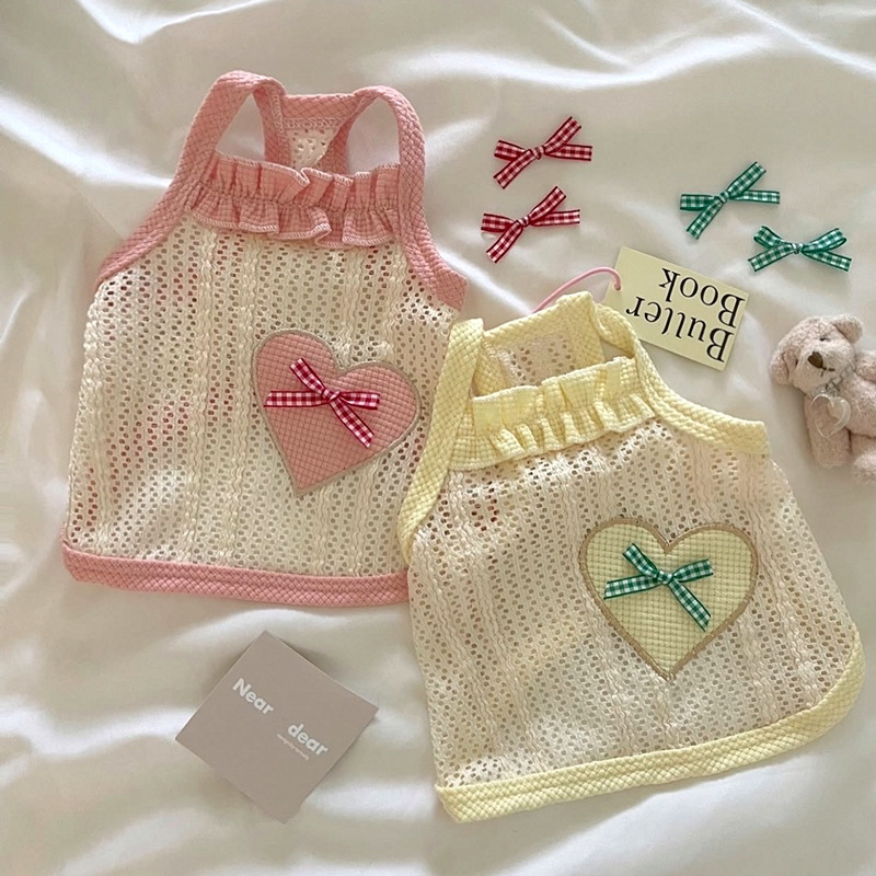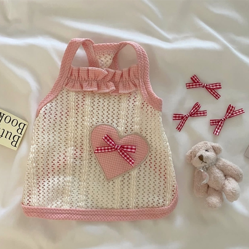 애완 동물 개 옷 귀여운 얇은 통기성 사랑 메쉬 슬링 테디 보메이 작은 개 새끼 고양이 조끼