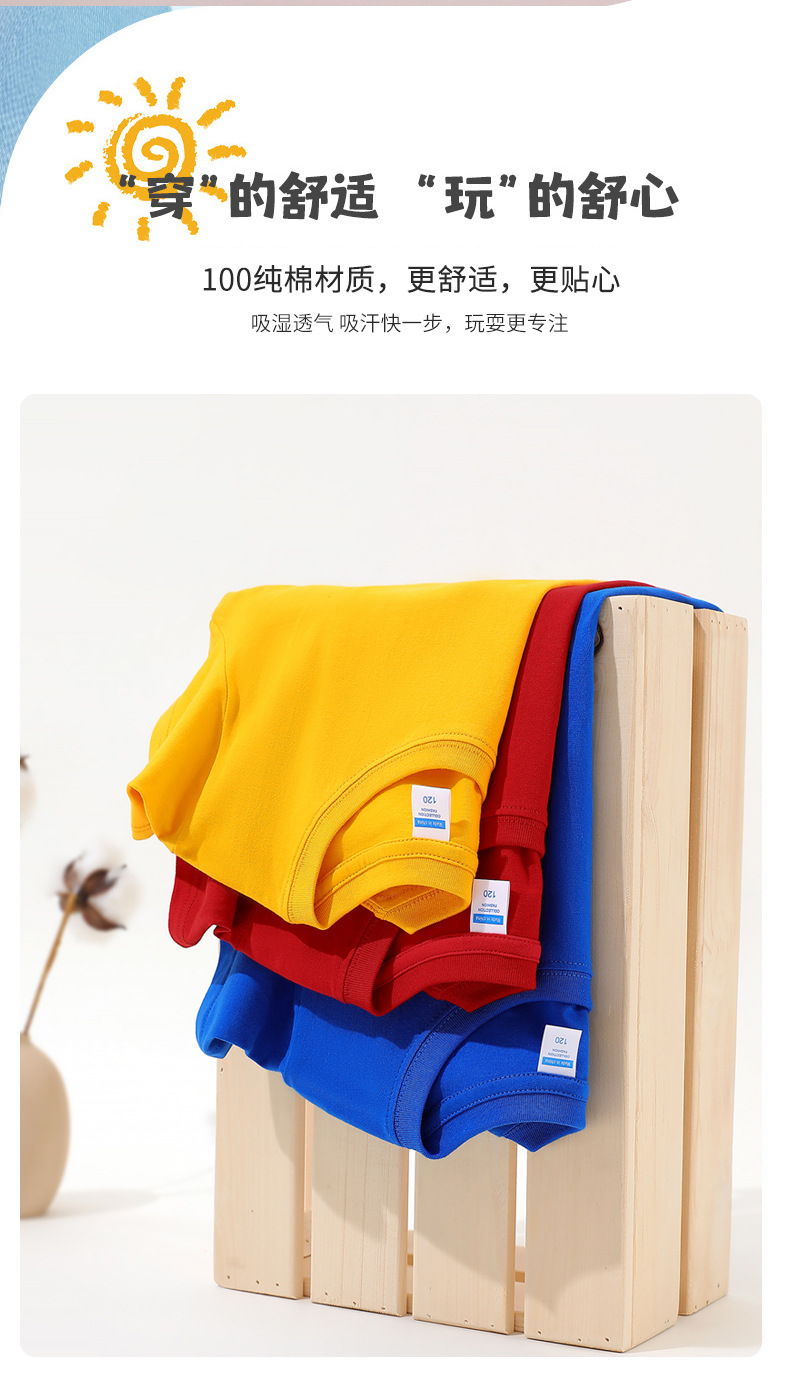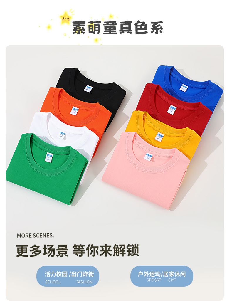 아동용 컬러 티셔츠 순면 남녀 반팔 캔디색 초등학생 수업 옷 유치원 학부모-아동 활동 스포츠 회의