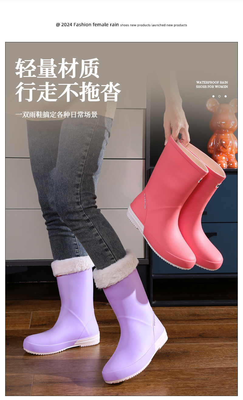 여성용 하이웨이스트 레인부츠 2024 방수 고무신 다용도 미끄럼 방지 아웃도어 방수 레인부츠 패셔너블 PVC