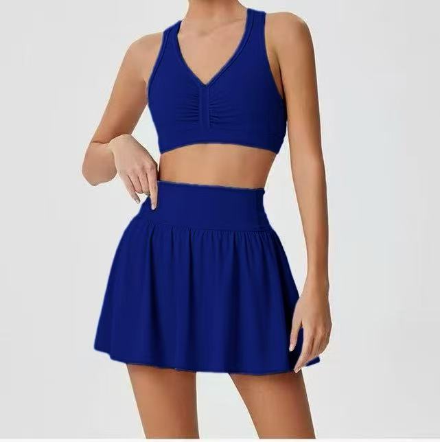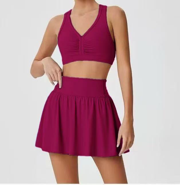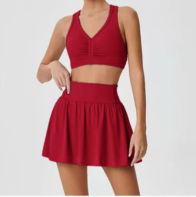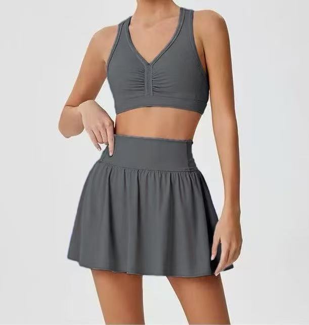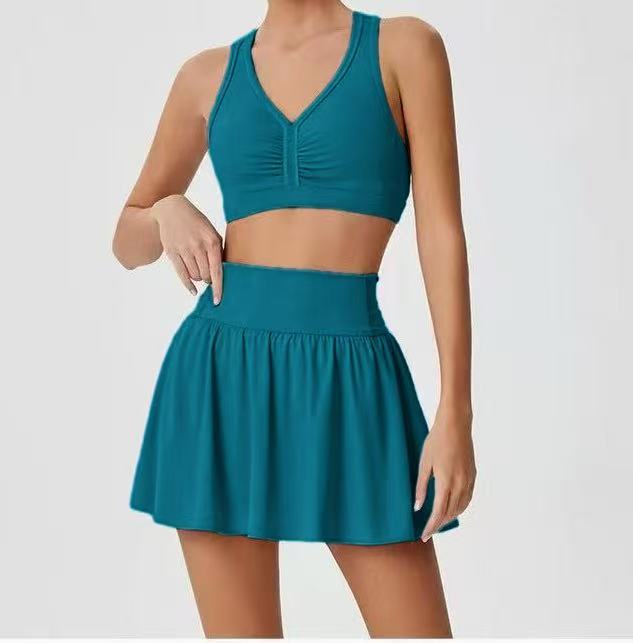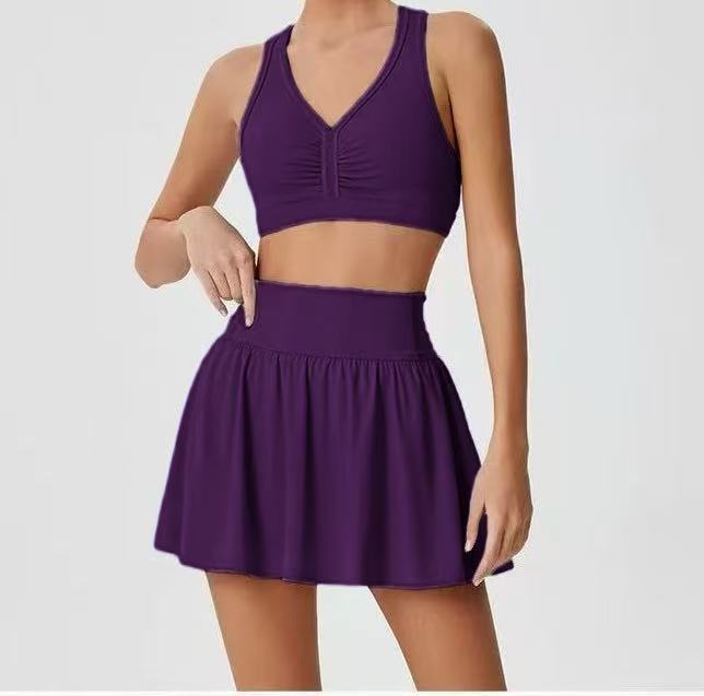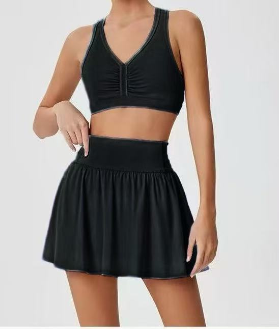 국경 간 테니스 스커트 배드민턴 스커트 원활한 요가 세트 소녀 안티 라이트 높은 허리 아름다운 등 세트