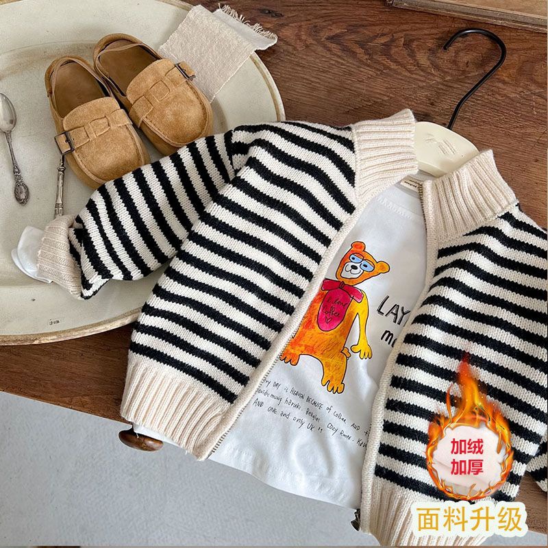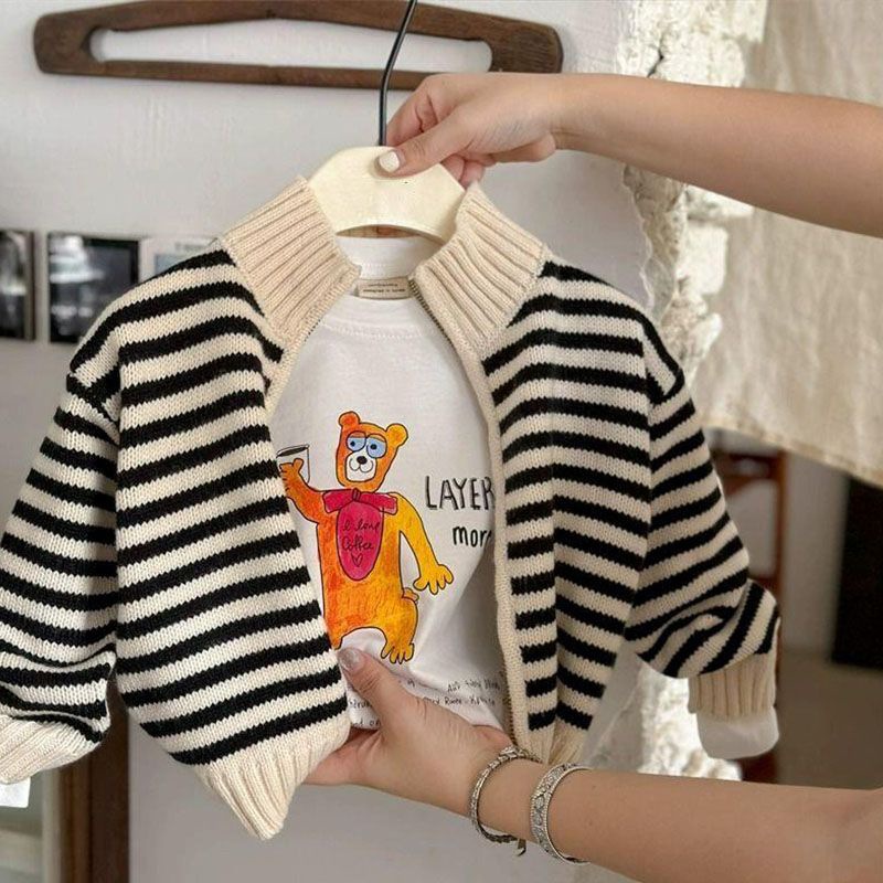어린이 줄무늬 스웨터 카디건 2025 봄 아기 소년 스웨터 탑 어린이 줄무늬 니트 재킷 유행