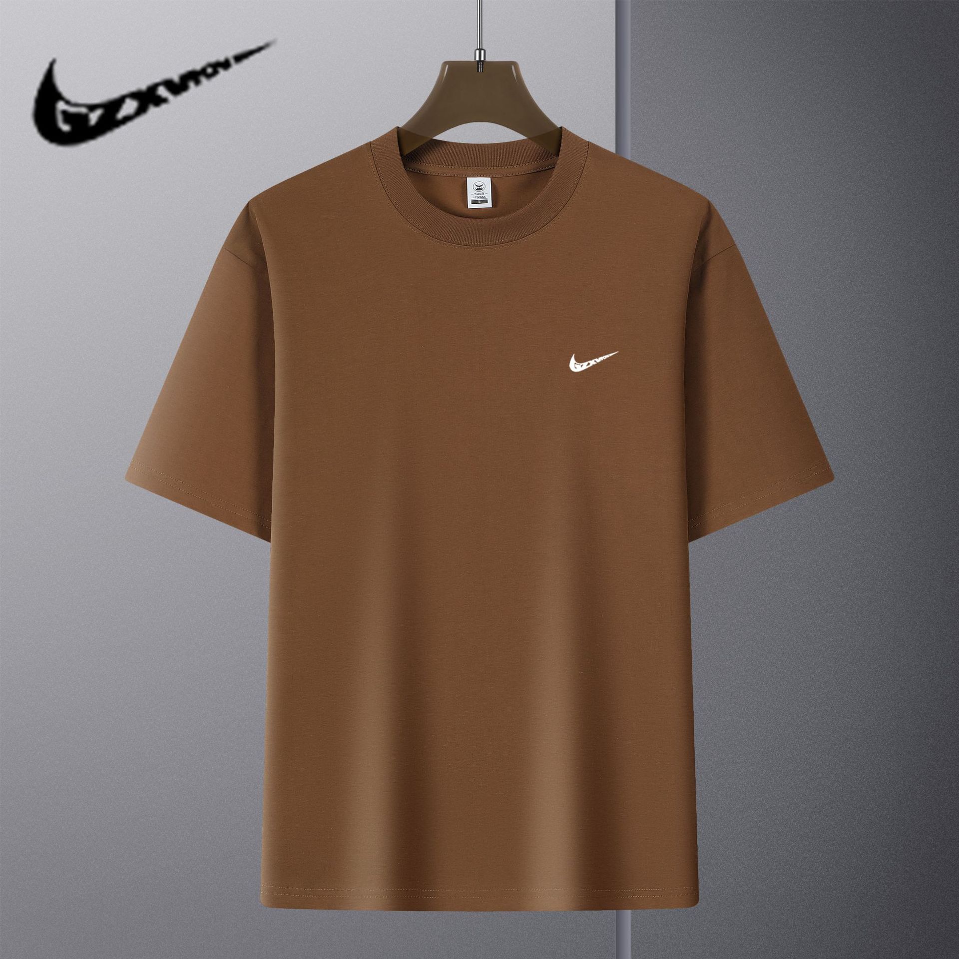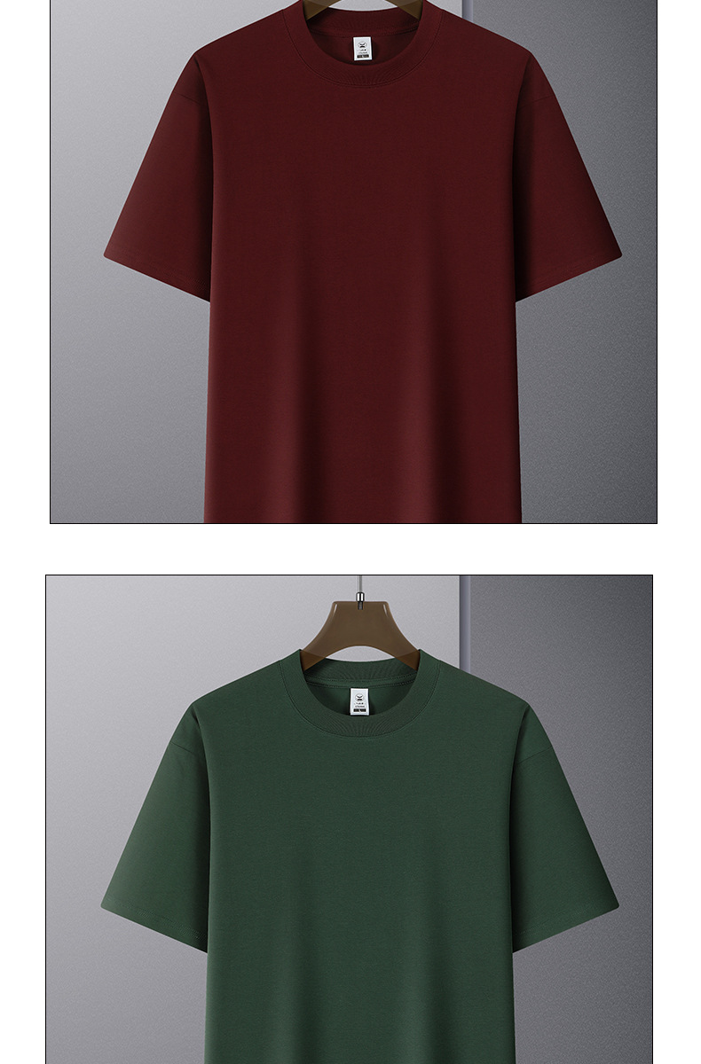 남자 2025 여름 반팔 티셔츠 남자와 여자의 느슨한 티셔츠 단색 둥근 목 큰 어깨 어깨 무거운 커플 티셔츠 탑스토어 가기