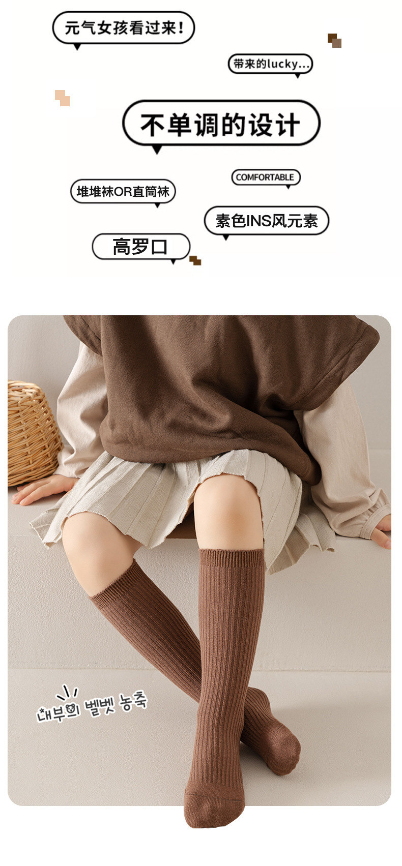 어린이 양말 춤 양말 소년과 소녀 스택 양말 더블 바늘 빗 코튼 송아지 양말 스트레이트 모란디 양말 봄과 가을