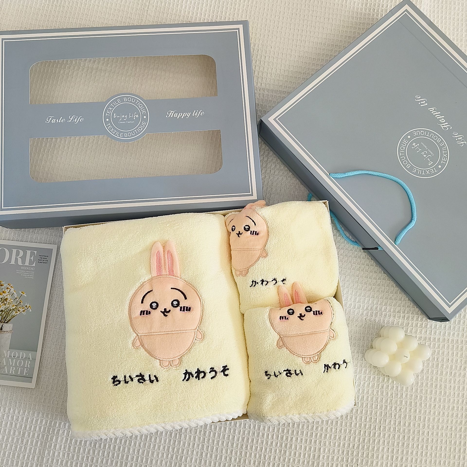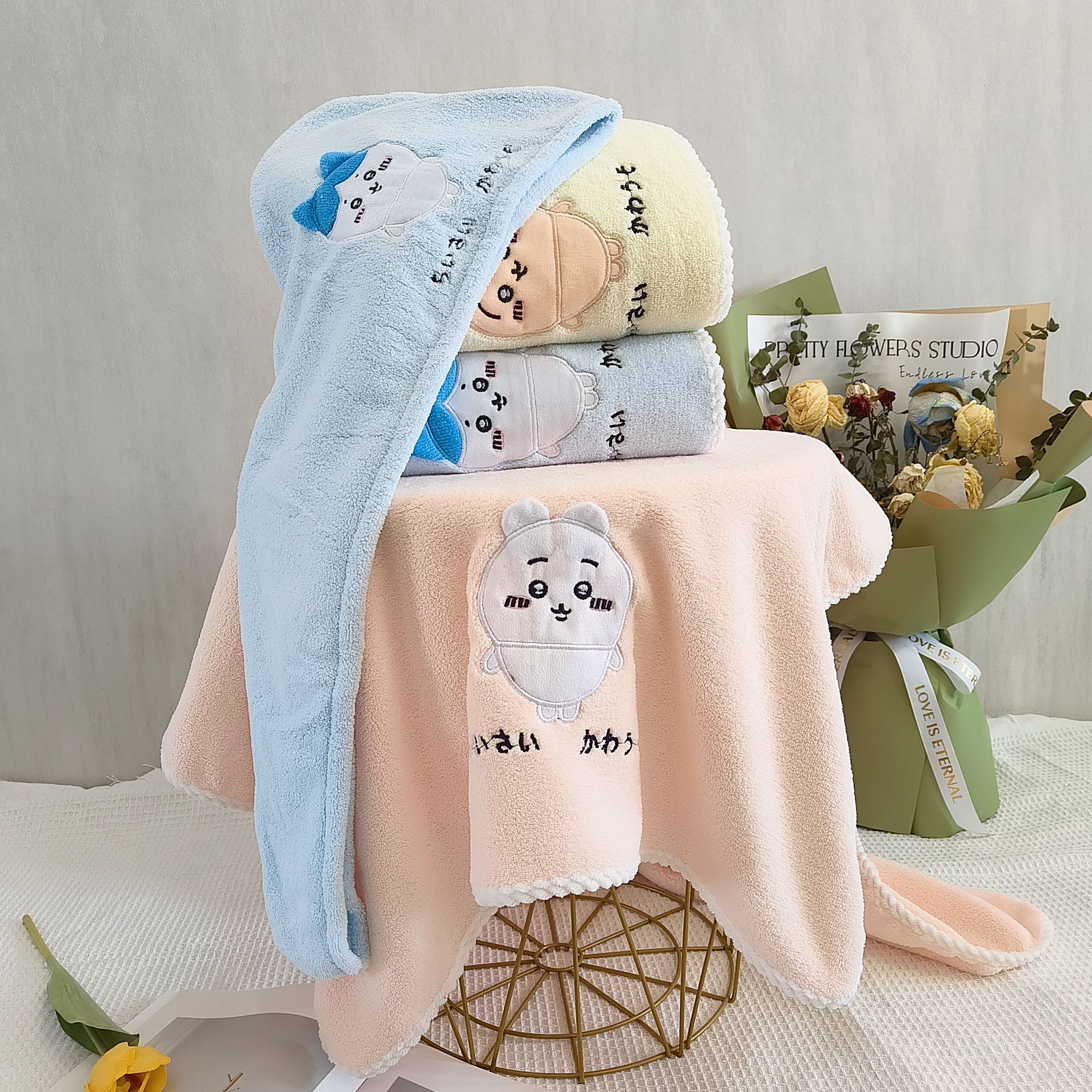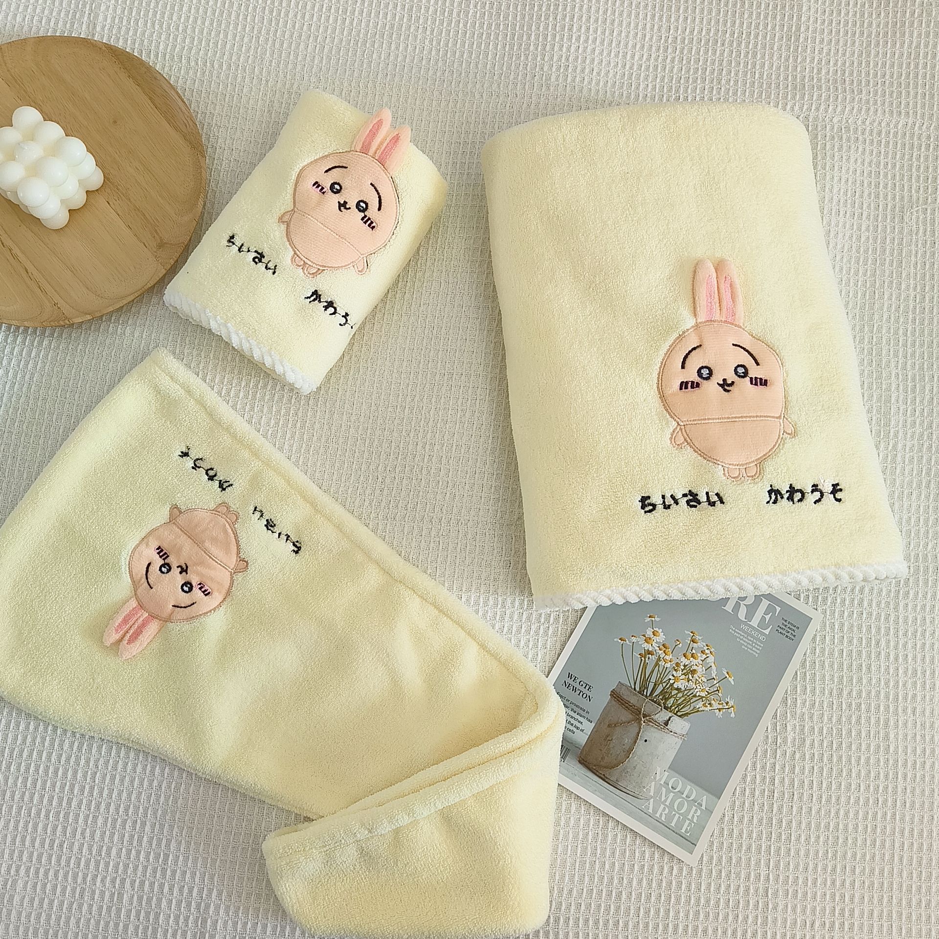 만화 귀여운 Usachi 드라이 헤어 캡 부드러운 흡수성 목욕 타월 가정용 어린이 얼굴 수건 작은 카드 세트 타월스토어 가기