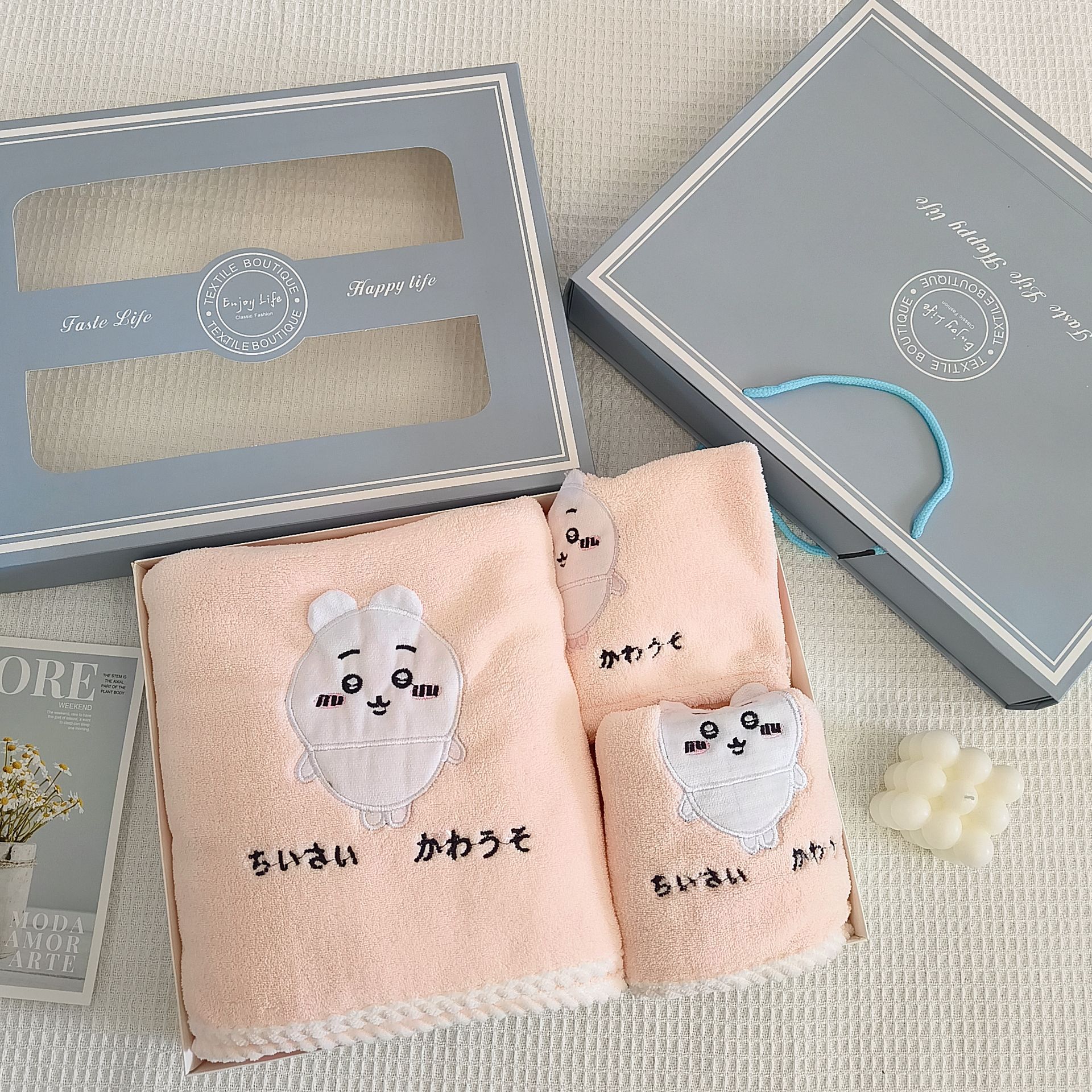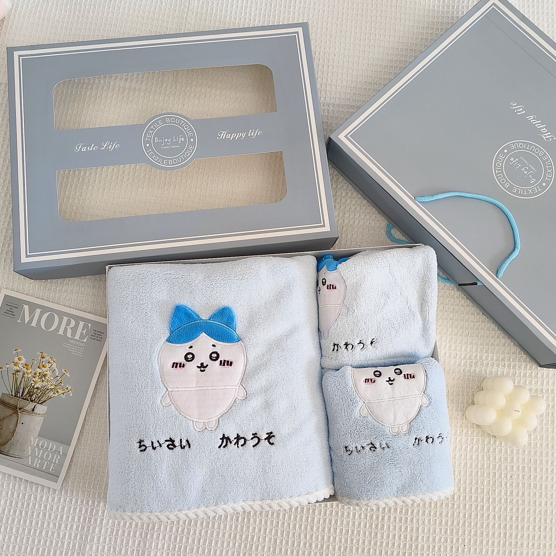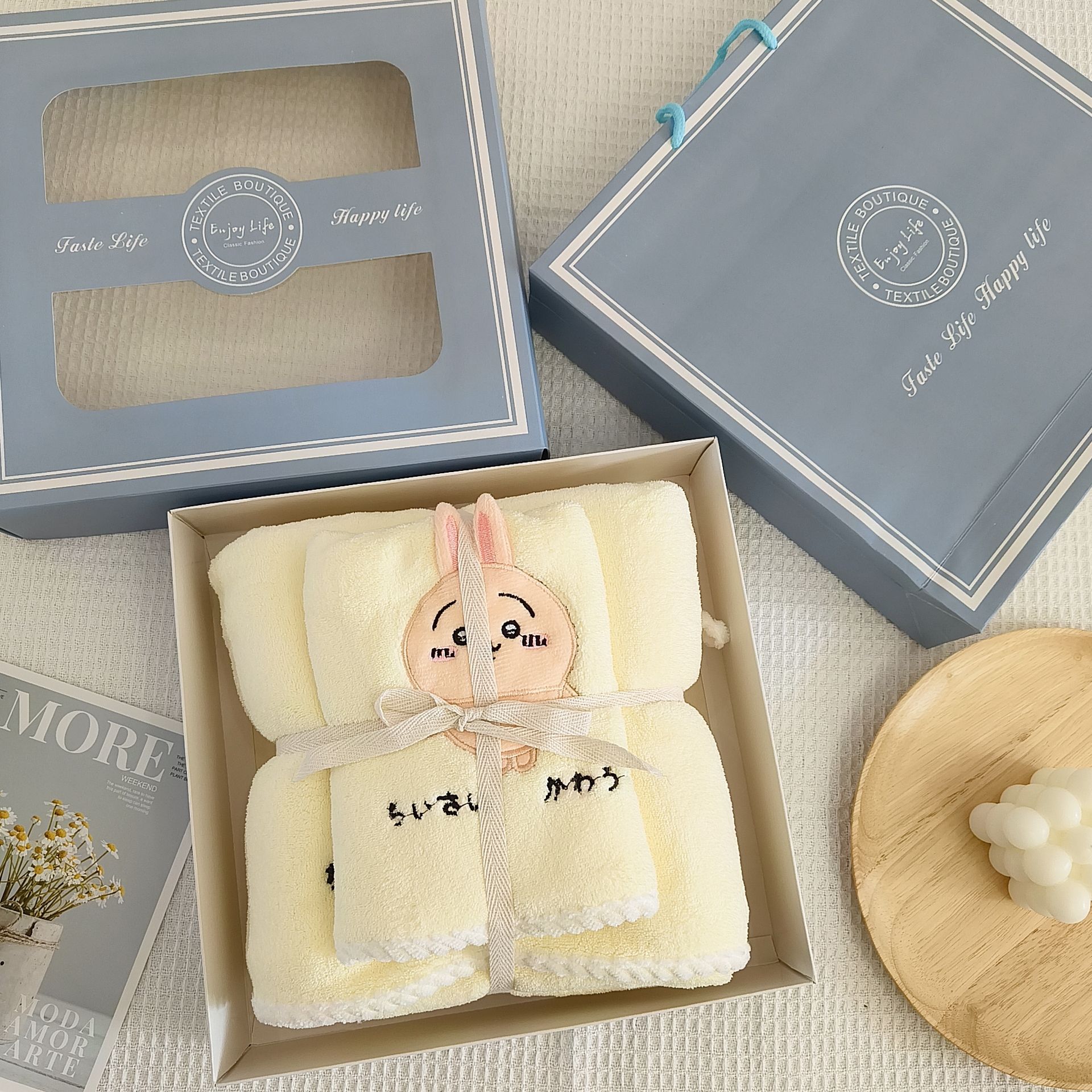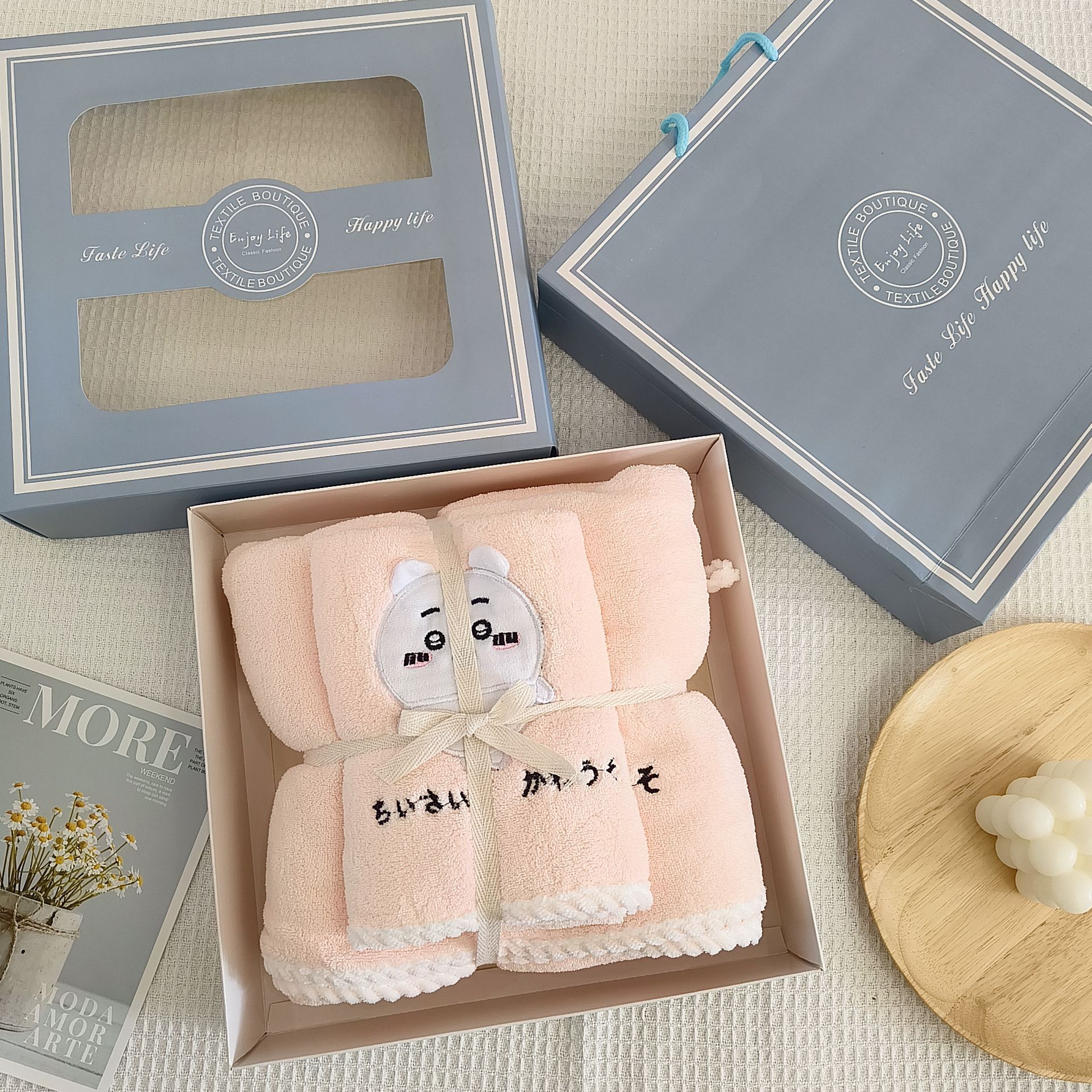 만화 귀여운 Usachi 드라이 헤어 캡 부드러운 흡수성 목욕 타월 가정용 어린이 얼굴 수건 작은 카드 세트 타월스토어 가기