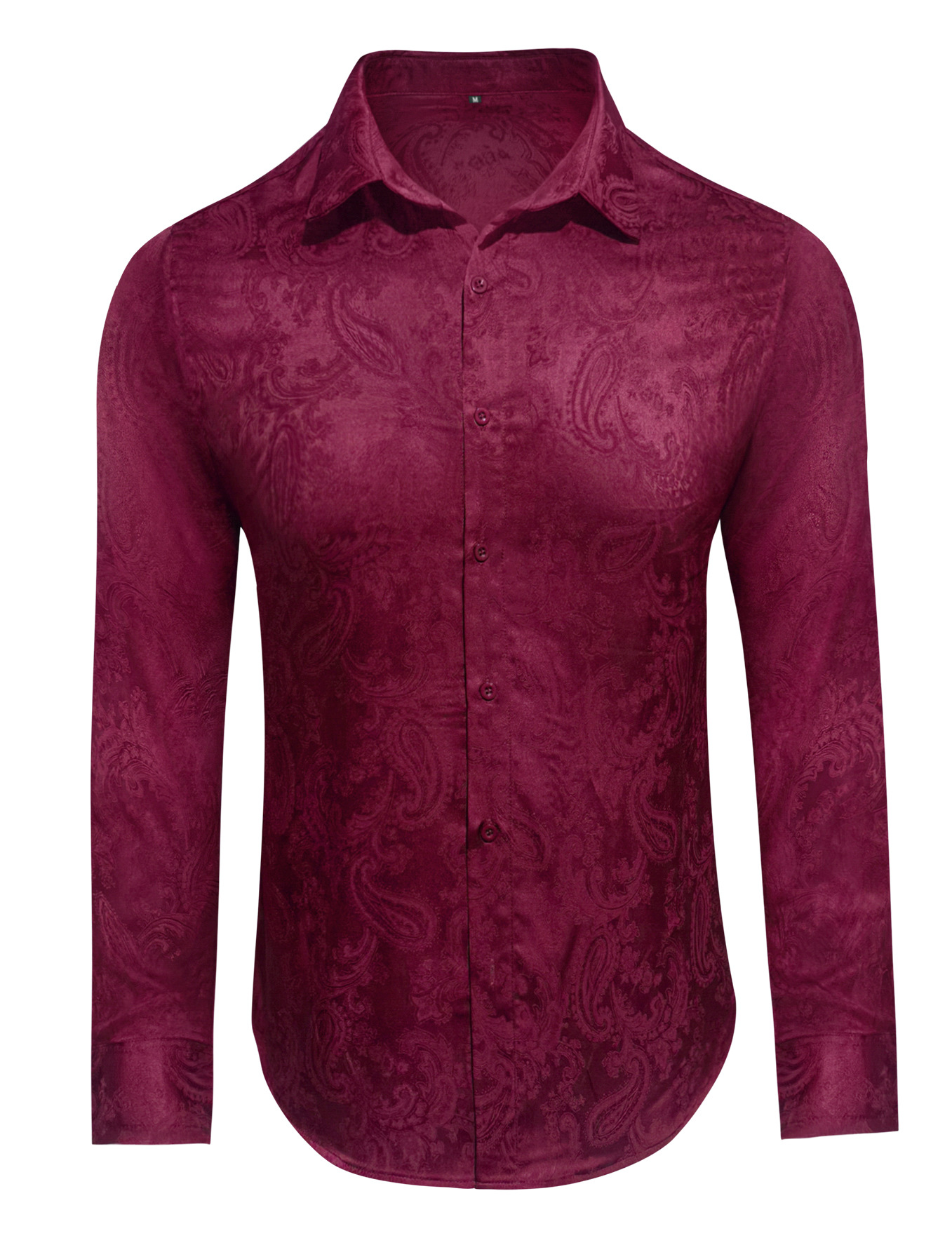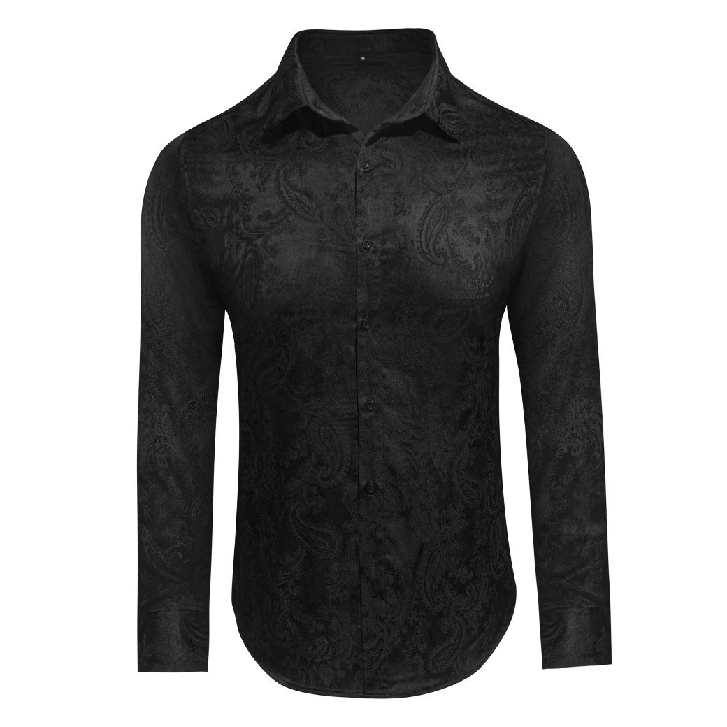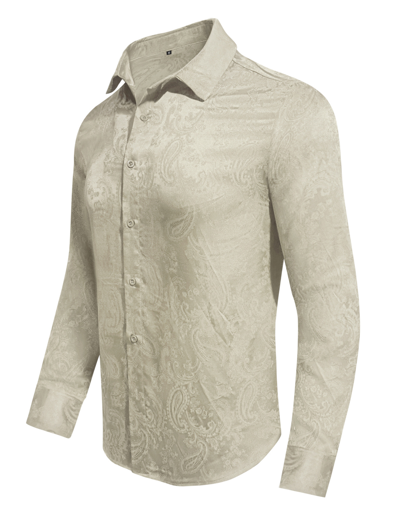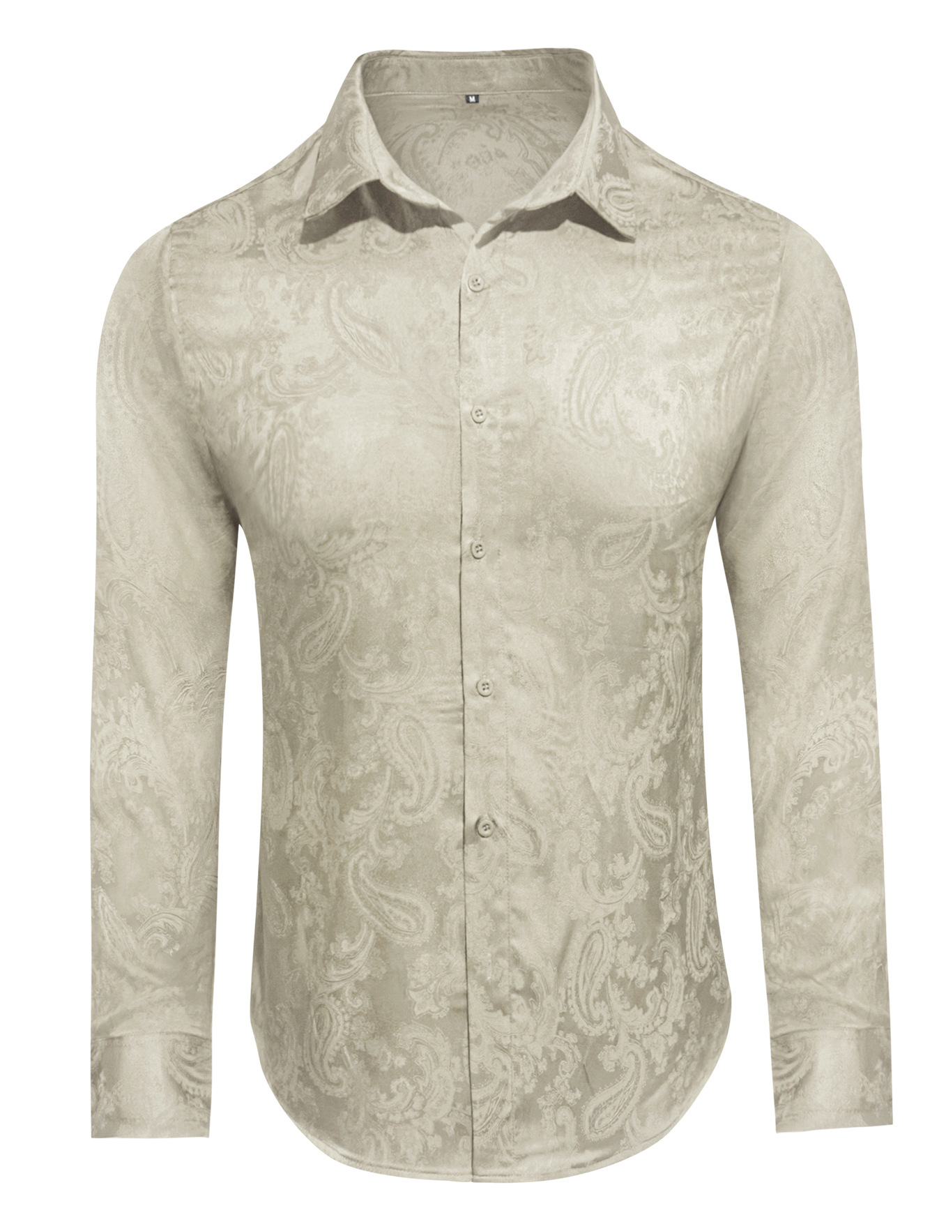 2025 크로스보더 아마존 남성용 실크 새틴 셔츠 긴팔 자카드 페이즐리 파티 댄스 파티 웨딩 셔츠