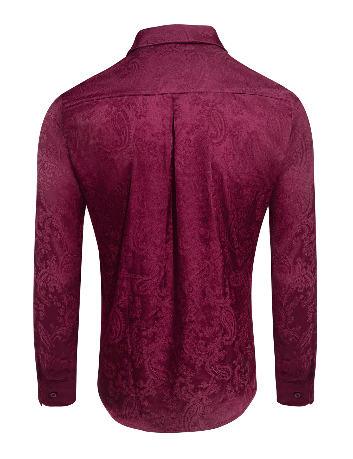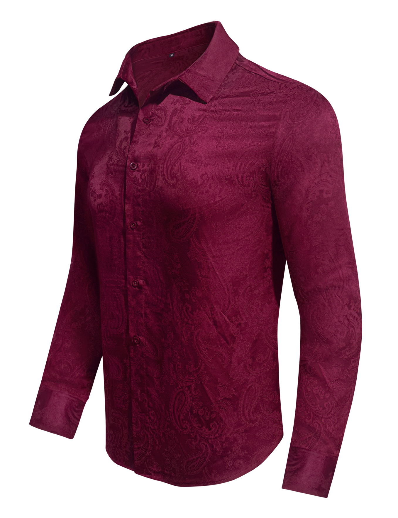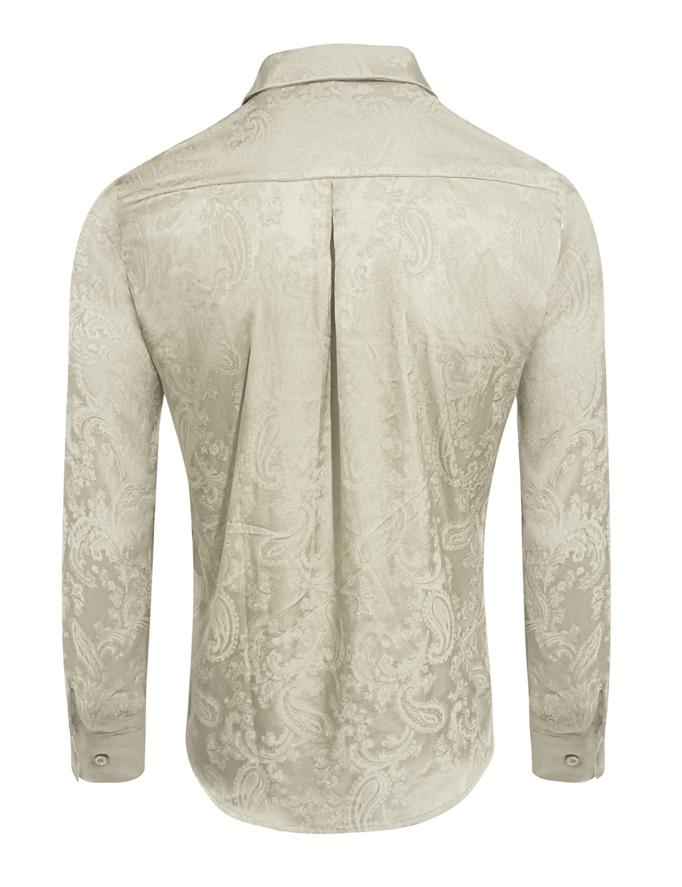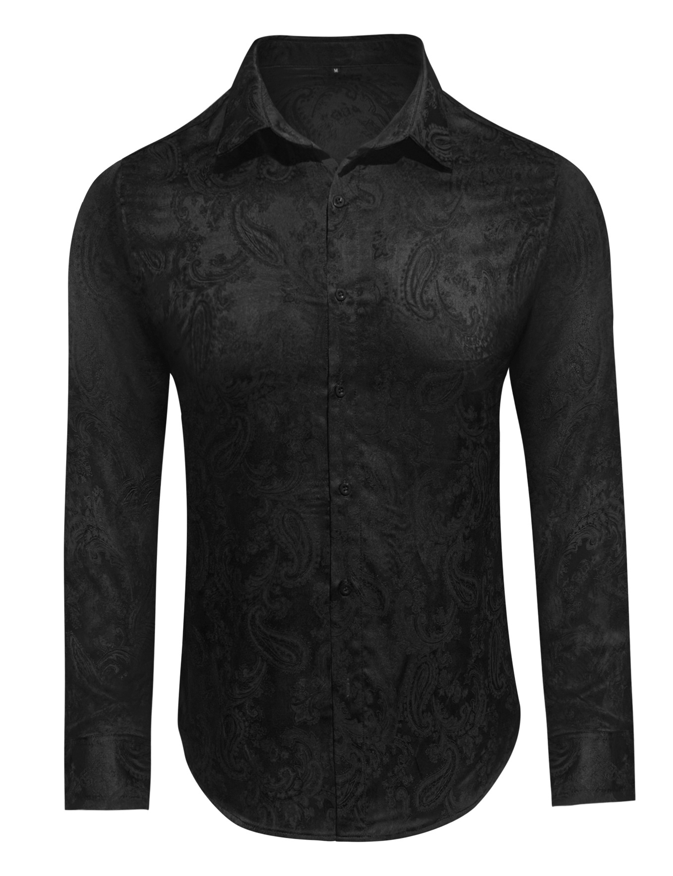 2025 크로스보더 아마존 남성용 실크 새틴 셔츠 긴팔 자카드 페이즐리 파티 댄스 파티 웨딩 셔츠