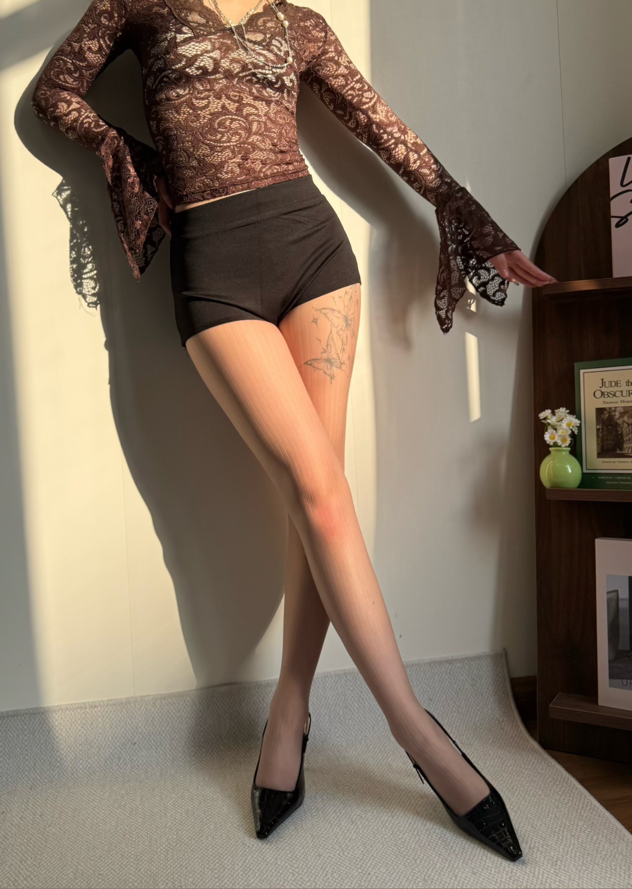 여성을위한 어두운 패턴 불규칙한 얇은 스트립 스타킹 팬티 스타킹 봄과 여름 초박형 반투명 T 가랑이 디자인 나일론 소재 핫 소녀 스타일