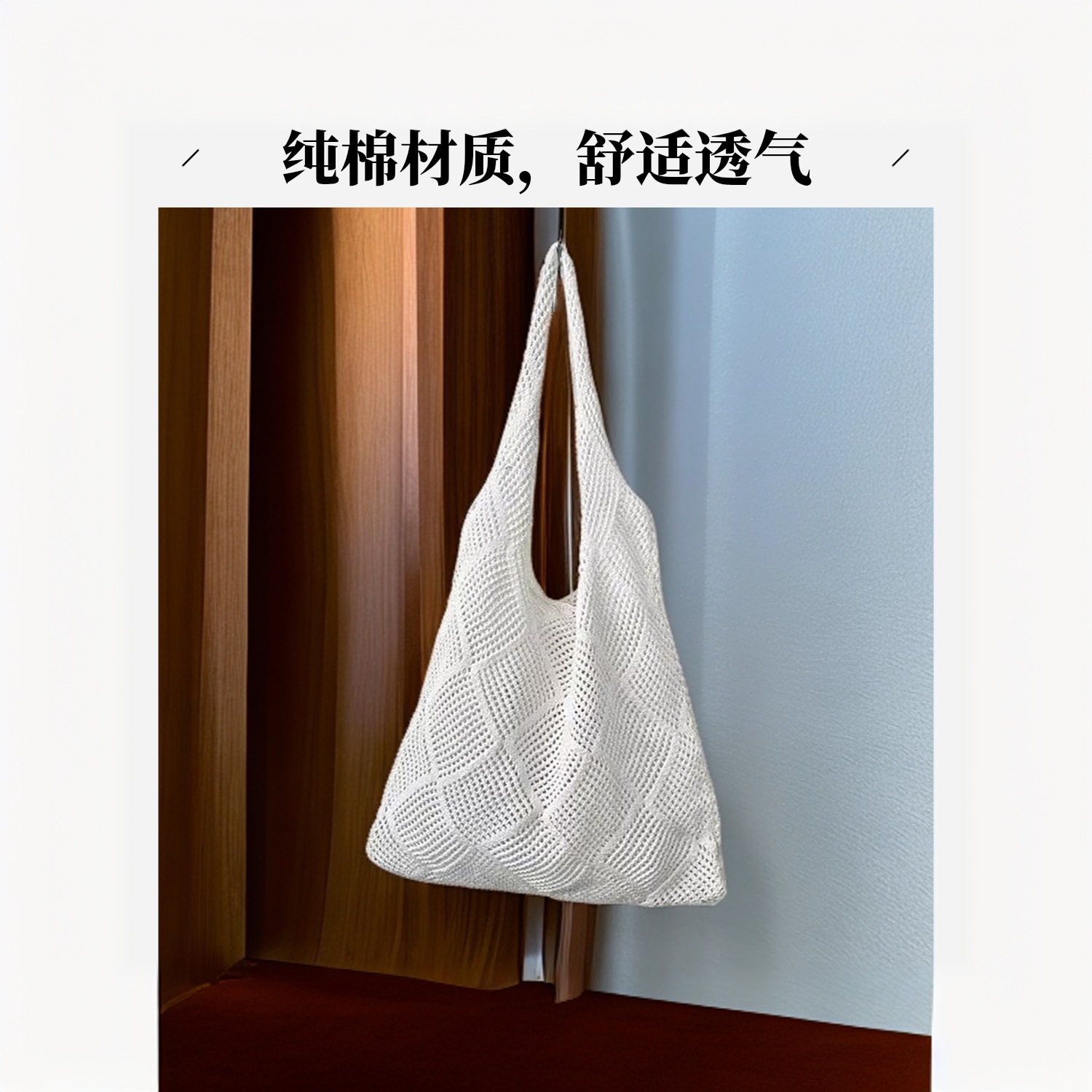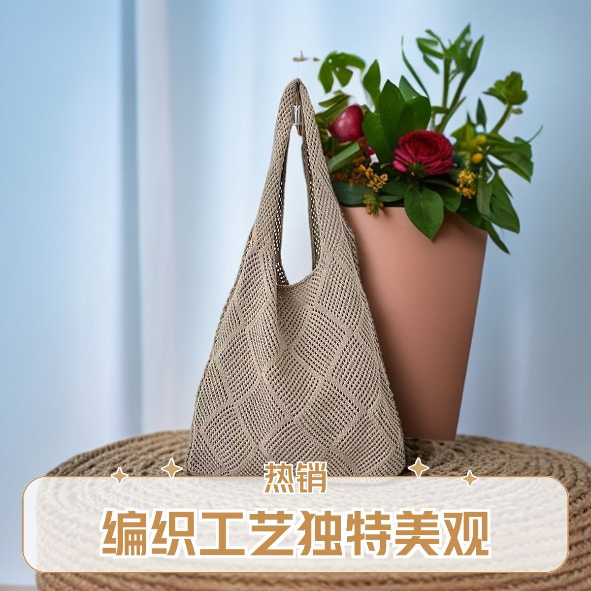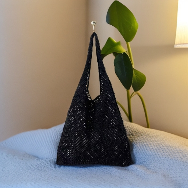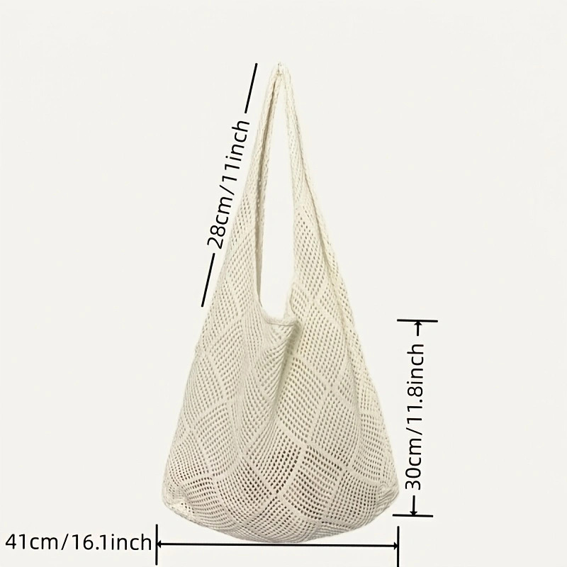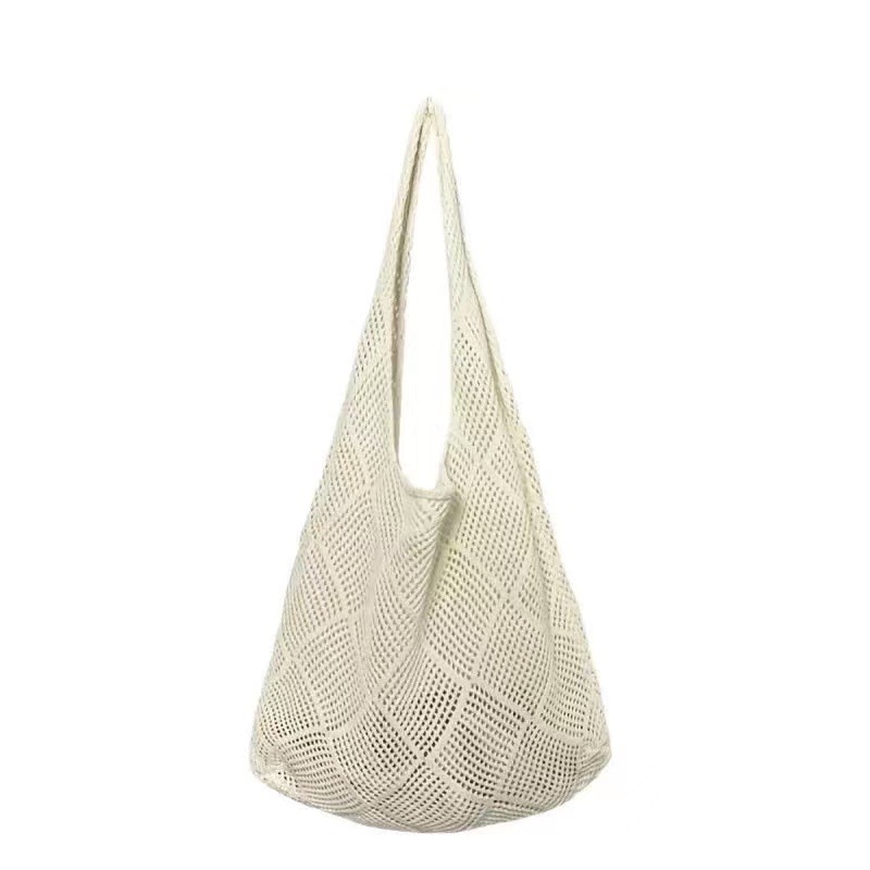 여성용 크로스백, 일본 및 한국 휴대용 단색 크로스보더 토트백, 복고풍 중공 니트백, 우븐백, 비치백스토어 가기